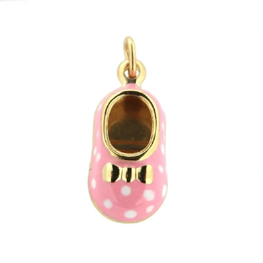 Mejora tu estilo con el Colgante de Zapato en Oro Amarillo de 18K con Esmalte Rosa y Lunares. Este colgante meticulosamente elaborado presenta un diseño juguetón pero elegante, perfecto para añadir un toque de fantasía a cualquier atuendo. Mide 0.65 pulgadas x 0.38 pulgadas (16.5mm x 10mm), y se extiende hasta 0.98 pulgadas (25mm) con el asa, equilibrando tamaño y visibilidad de manera hermosa. Fabricado en Italia, este colgante irradia sofisticación y calidad, construido con oro amarillo hipoalergénico de 18k que es libre de plomo y níquel, garantizando comodidad para todo tipo de piel. El vibrante esmalte rosa, acentuado con delicados lunares blancos, ofrece un estallido de color que aporta un espíritu alegre a tu look. El diseño único lo convierte en una pieza destacada, ideal para elevar el uso diario o complementar un atuendo para una ocasión especial. Versátil en diseño, puede añadirse a cualquier cadena delgada o pulsera de charms, realzando tu conjunto. Cada Colgante de Zapato en Oro Amarillo de 18K con Esmalte Rosa y Lunares llega bellamente empaquetado en una elegante caja y bolsa Amalia, convirtiéndolo en un regalo perfecto para cualquier ocasión, desde cumpleaños hasta momentos especiales sin motivo.