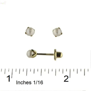 Elegancia Clásica con Pendientes de Perla Cultivada de 4mm con Cierre de Tornillo en Oro Macizo de 18K para Niños