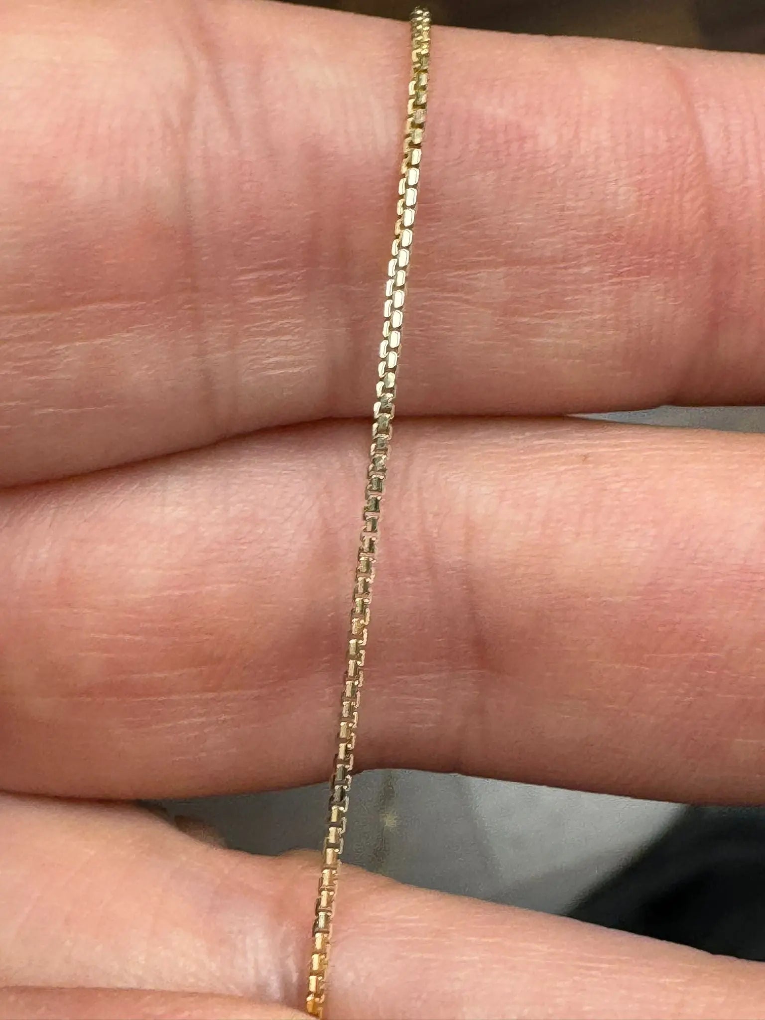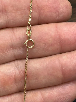 Descubra la elegancia atemporal de nuestra cadena de caja de oro macizo de 18K, que mide 15.75 pulgadas de largo y 0.9 mm de ancho. Elaborada en Italia con oro amarillo macizo de 18k de alta calidad, esta exquisita cadena es libre de plomo y níquel, garantizando que sea hipoalergénica y segura para todo tipo de piel. Su fina artesanía resalta la belleza lustrosa y la precisión de la joyería italiana, ofreciendo una pieza que no solo es elegante sino también duradera. El diseño elegante y sencillo de la cadena la convierte en un accesorio versátil, perfecto tanto para el uso diario como para ocasiones especiales. Cada cadena viene bellamente empaquetada en una caja y bolsa de regalo Amalia, lo que la convierte en un regalo ideal para alguien especial o un lujo para usted mismo. Eleve su colección de joyas con esta elegante y refinada cadena de caja, una pieza que encarna sofisticación y calidad.
