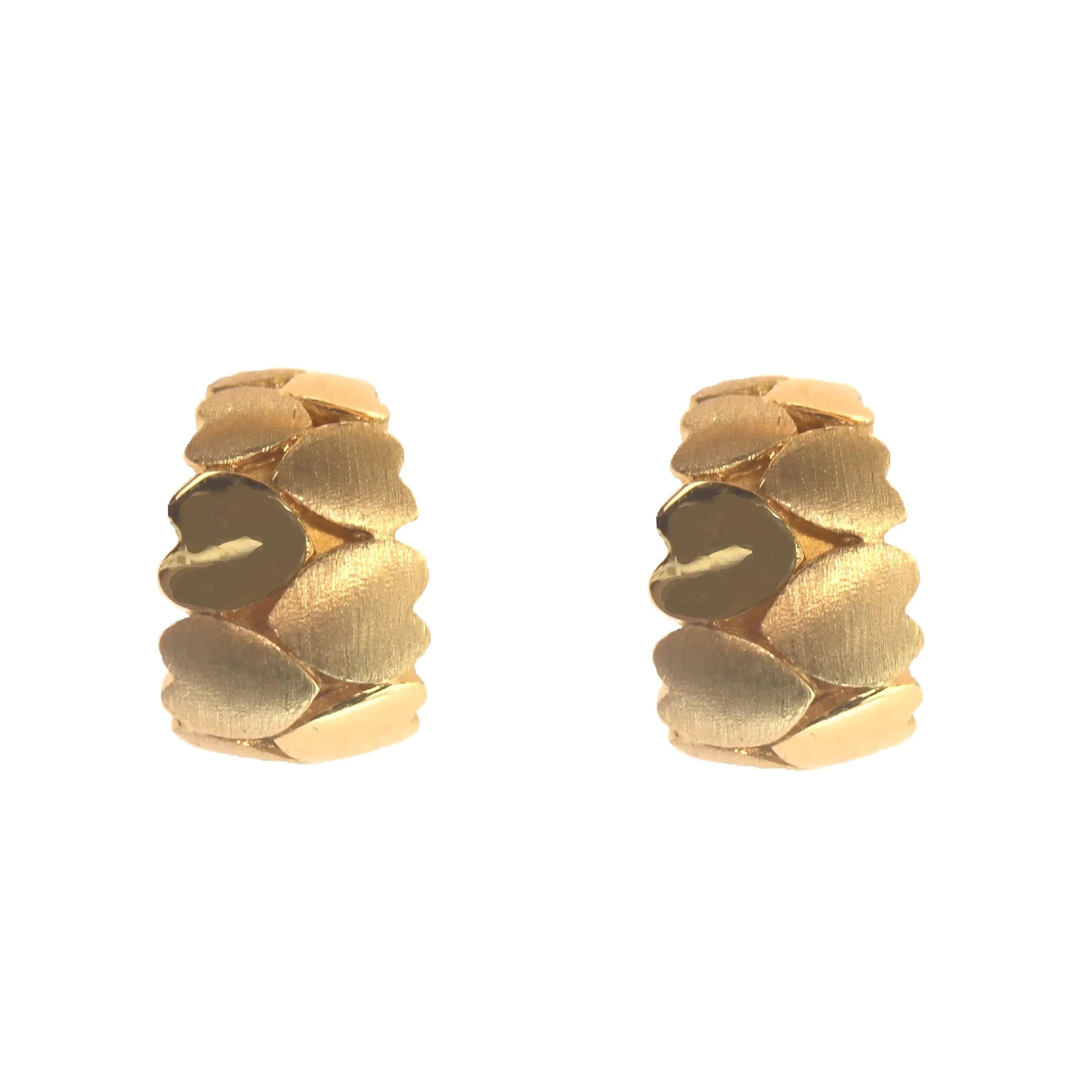 Con un peso de 8.70 gramos, estos pendientes están hechos de oro amarillo macizo de 18K, garantizando tanto durabilidad como belleza atemporal. El diseño de corazones satinados y pulidos añade un toque de romance y encanto, haciendo que estos pendientes sean ideales para cualquier ocasión.