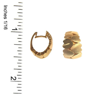 Presentamos nuestros exquisitos Pendientes Huggie de Corazones Satinados y Pulidos en Oro Macizo de 18K, la combinación perfecta de elegancia y sofisticación. Elaborados con meticulosa atención al detalle en Italia, estos hermosos pendientes de aro con bisagra están diseñados para cautivar. Con una altura de 0.64 pulgadas (16.3 mm) y un ancho de 0.43 pulgadas (10.9 mm), estos pendientes ofrecen una presencia impresionante en tus orejas.