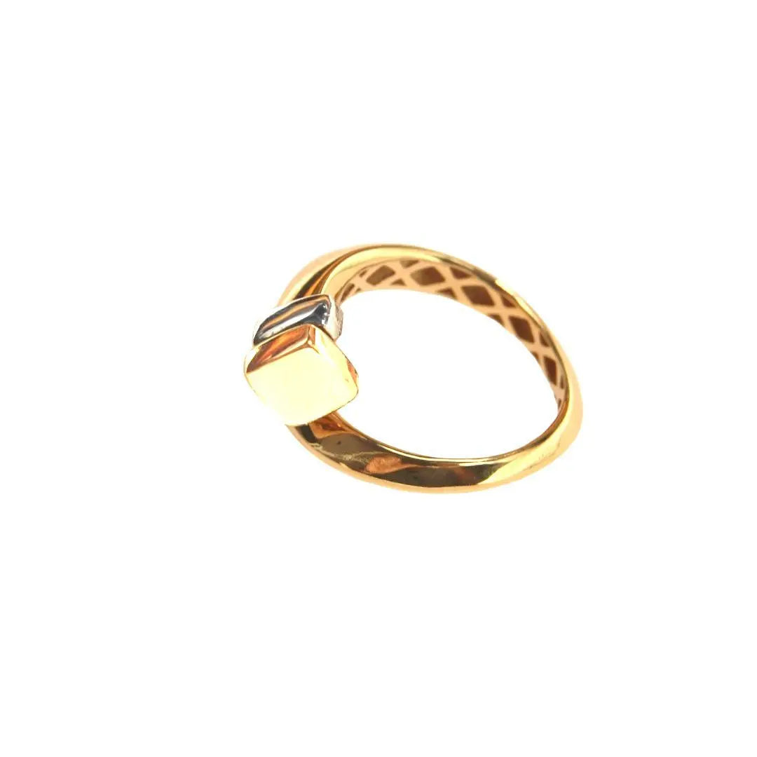 El anillo es de talla fija 6.5, asegurando un ajuste perfecto para quienes aprecian la fina artesanía. Pesa 3.90 gramos y tiene un ancho superior de 12.1 mm, convirtiéndolo en una pieza llamativa que destaca. El diseño abierto añade un toque moderno, mientras que el oro tricolor ofrece un look versátil que complementa cualquier atuendo.