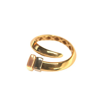 Descubre la elegancia única del Anillo de Diseño de Uña Abierta Pulida en Oro Sólido Tricolor de 18K. Fabricado en Italia, este exquisito anillo presenta un diseño distintivo con elementos de oro rojo y blanco que simulan una uña cuadrada en la parte superior. Hecho con oro sólido hipoalergénico, este anillo ofrece estilo y comodidad.