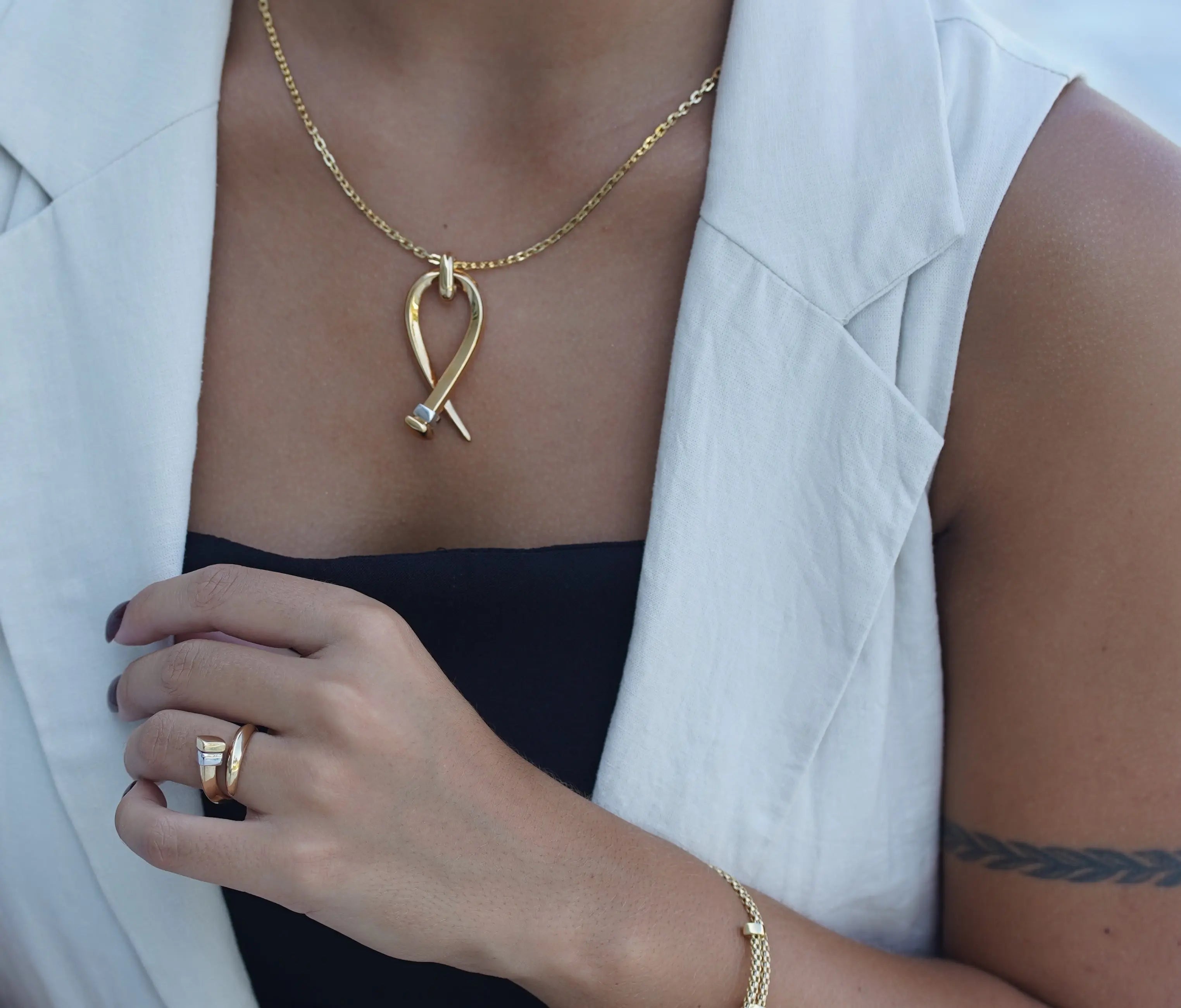 Combina este anillo con nuestro colgante de uña tricolor a juego para un look coordinado y sofisticado. Presentado en una elegante caja de regalo Amalia azul turquesa, este anillo es un regalo ideal para ti o un ser querido. Experimenta la fusión del diseño contemporáneo y la artesanía italiana con el Anillo de Diseño de Uña Abierta Pulida en Oro Sólido Tricolor de 18K, una pieza que seguro impresionará y encantará.