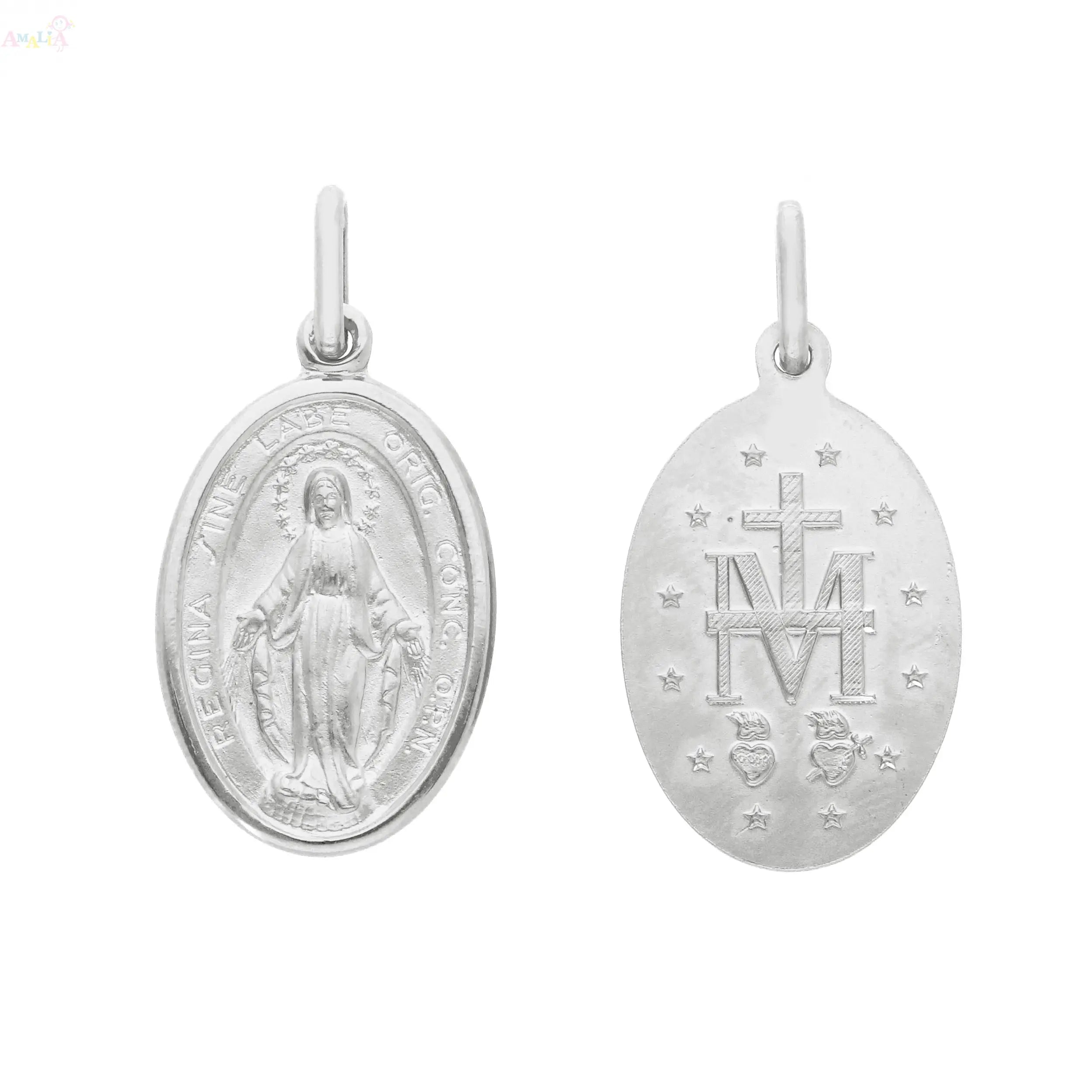 Elige entre dos dimensiones: 0.79 x 0.55 pulgadas (20 x 14 mm) con un peso de 3.0 gramos, o 0.94 x 0.63 pulgadas (24 x 16 mm) con un peso de 4.60 gramos. Originaria de las visiones de Santa Catalina Labouré tras sus encuentros con la Santísima Virgen María en París, esta medalla es un símbolo profundo de fe y protección. Presenta la icónica representación de Nuestra Señora de la Gracia, que se cree concede gracias especiales a quienes la llevan con devoción.