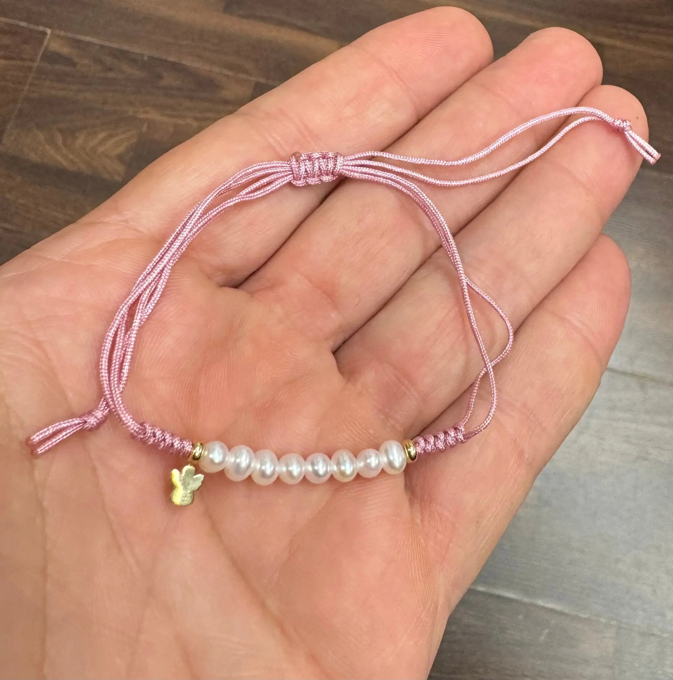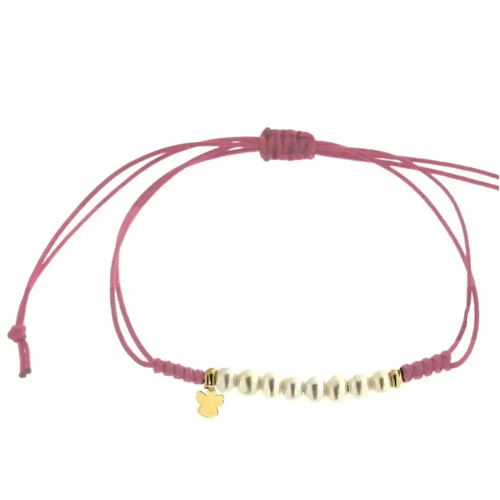 Sorpréndela con un encantador regalo en forma de nuestro Brazalete de Macramé Rosa con Ángel y Perlas de Oro Amarillo Macizo de 18K. Este exquisito accesorio combina con gracia la riqueza del oro amarillo macizo de 18K con la belleza atemporal de las perlas cultivadas, creando un brazalete que es a la vez elegante y significativo. El macramé rosa suave añade un toque delicado, haciéndolo ideal para la elegancia diaria.