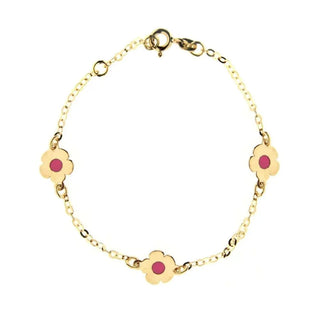 Abraza la elegancia con nuestra pulsera de flores esmaltadas y perlas en oro amarillo macizo de 18K, que presenta flores esmaltadas rosas y blancas combinadas con dos perlas cultivadas de 3 mm. Esta exquisita pulsera está diseñada para recién nacidos hasta niñas de 6 años y mide 5.50 pulgadas, con anillos de tamaño adicionales que comienzan en 4.75 pulgadas, asegurando un ajuste perfecto a medida que crece. Cada pieza está meticulosamente elaborada con oro de 18k hipoalergénico, libre de plomo y níquel, proporcionando seguridad y durabilidad para la piel delicada. La inclusión de perlas genuinas añade un toque de belleza clásica, convirtiéndola en un accesorio ideal para cualquier ocasión, desde salidas casuales hasta eventos formales. La pulsera viene elegantemente empaquetada en una caja y bolsa de regalo Amalia, convirtiéndola en un tesoro listo para regalar en cumpleaños, fiestas o como un regalo de bautizo considerado. Eleva su estilo y celebra momentos especiales con esta pieza atemporal, un regalo perfecto para crear recuerdos duraderos. Esta pulsera no solo realza su guardarropa, sino que también sirve como un recuerdo preciado por muchos años.