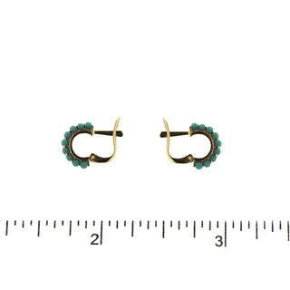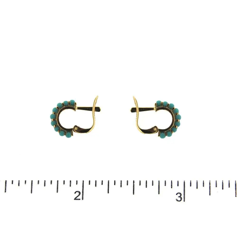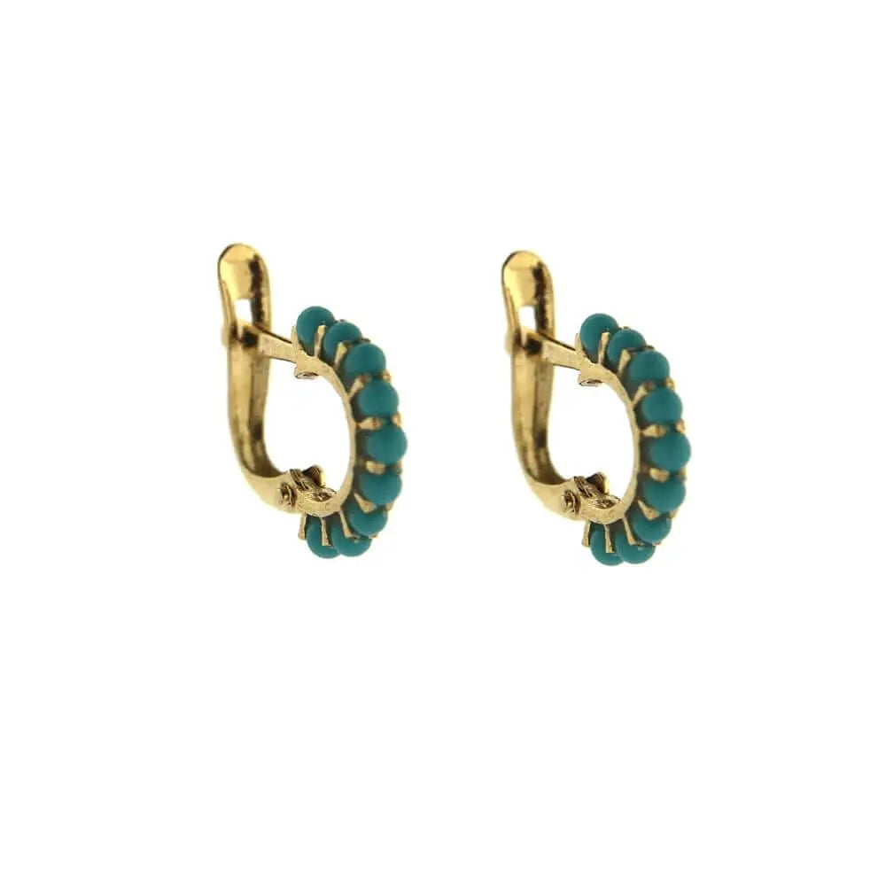 Pendientes de media argolla con cierre de palanca, mini cuentas de pasta de turquesa en oro amarillo macizo de 18K. Con un diámetro de 8.70 mm (0.34 pulgadas), estos pendientes están fabricados en oro 18k hipoalergénico, perfectos para niñas pequeñas con piel sensible. El sistema único de cierre de palanca garantiza un ajuste seguro y los hace fáciles de llevar todo el día. Presentados en una elegante caja y bolsa de regalo Amalia, estos pendientes son el regalo perfecto para cualquier ocasión especial. Añade un toque de color y sofisticación al atuendo de tu niña con estos exquisitos pendientes de media argolla. Ideales para niñas de 1 a 3 años, estos pendientes son una forma perfecta de comenzar su colección de joyas. Compra ahora y eleva su estilo hoy.