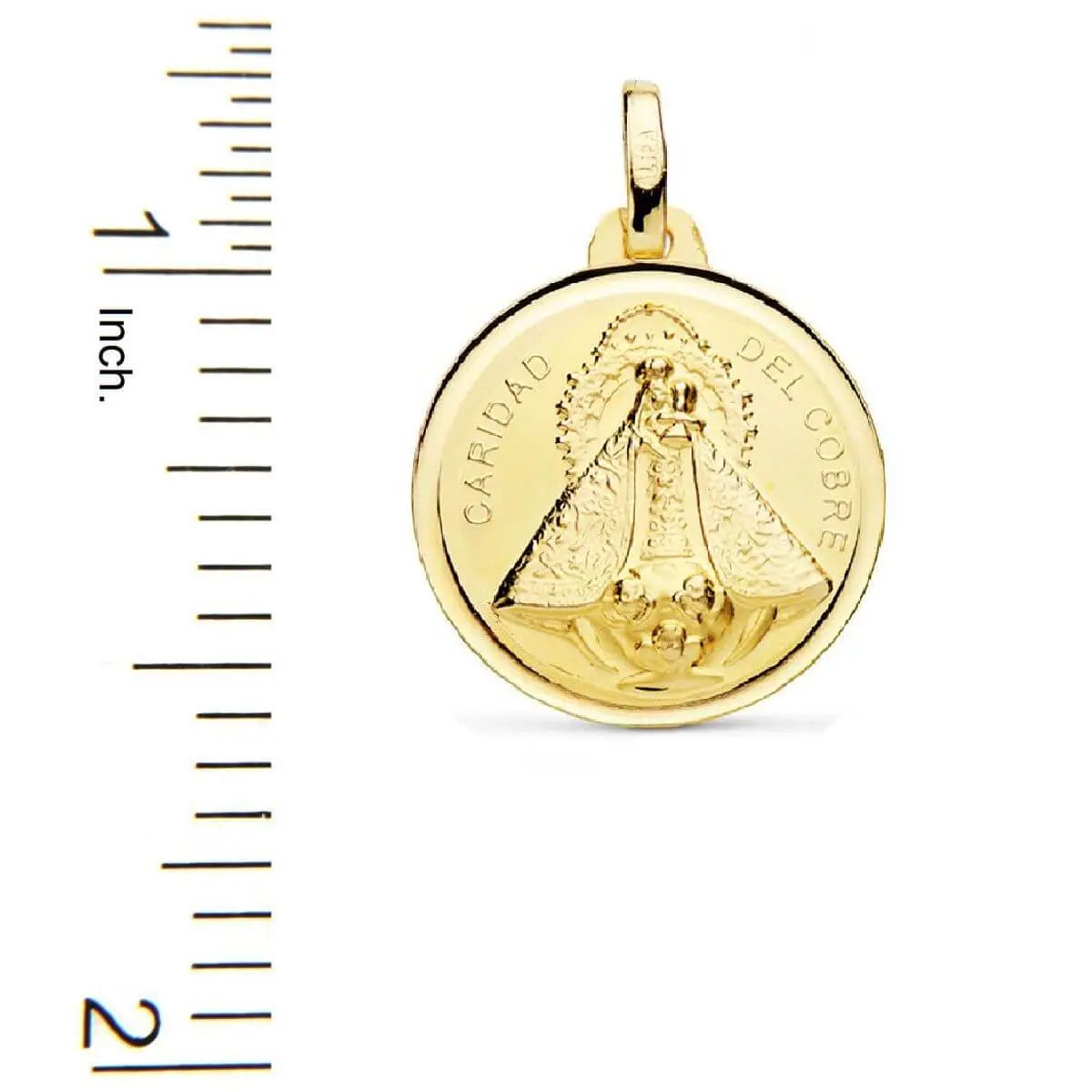 Oro amarillo macizo de 18K Nuestra Señora de la Caridad con la inscripción en español
