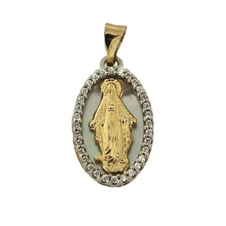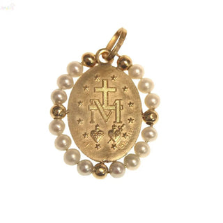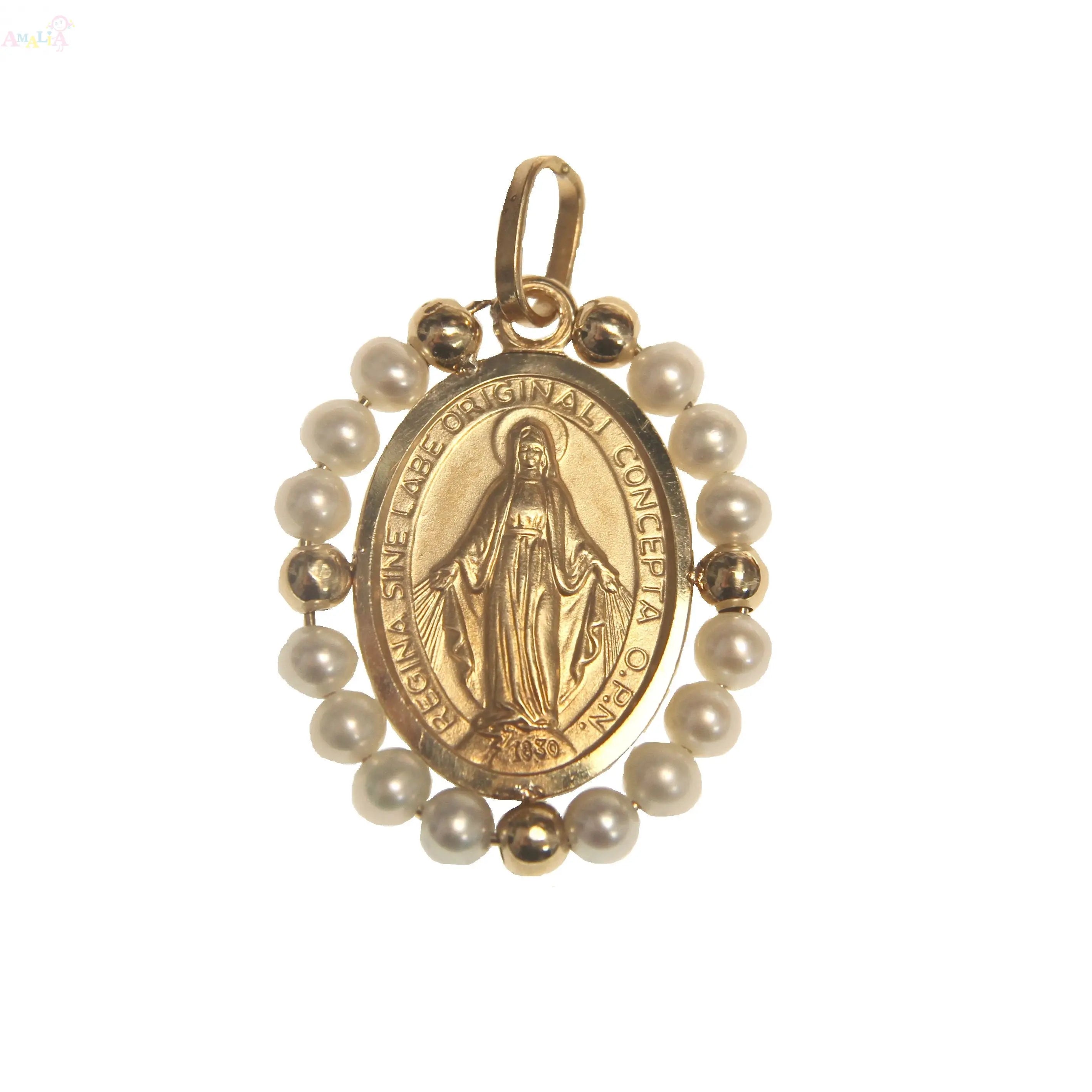 Descubre la belleza divina del Colgante Medalla Oval Milagrosa con Perlas de Oro Amarillo Macizo de 18K, una obra maestra meticulosamente elaborada en Italia. Este colgante combina la gracia espiritual con un diseño lujoso, presentando un impresionante borde de perlas cultivadas de 3 mm y delicadas cuentas de oro dispuestas para parecer una corona real. Midiendo 0.98 x 0.80 pulgadas (24.9 x 20.3 mm) sin el colgante, este colgante irradia elegancia y significado histórico.