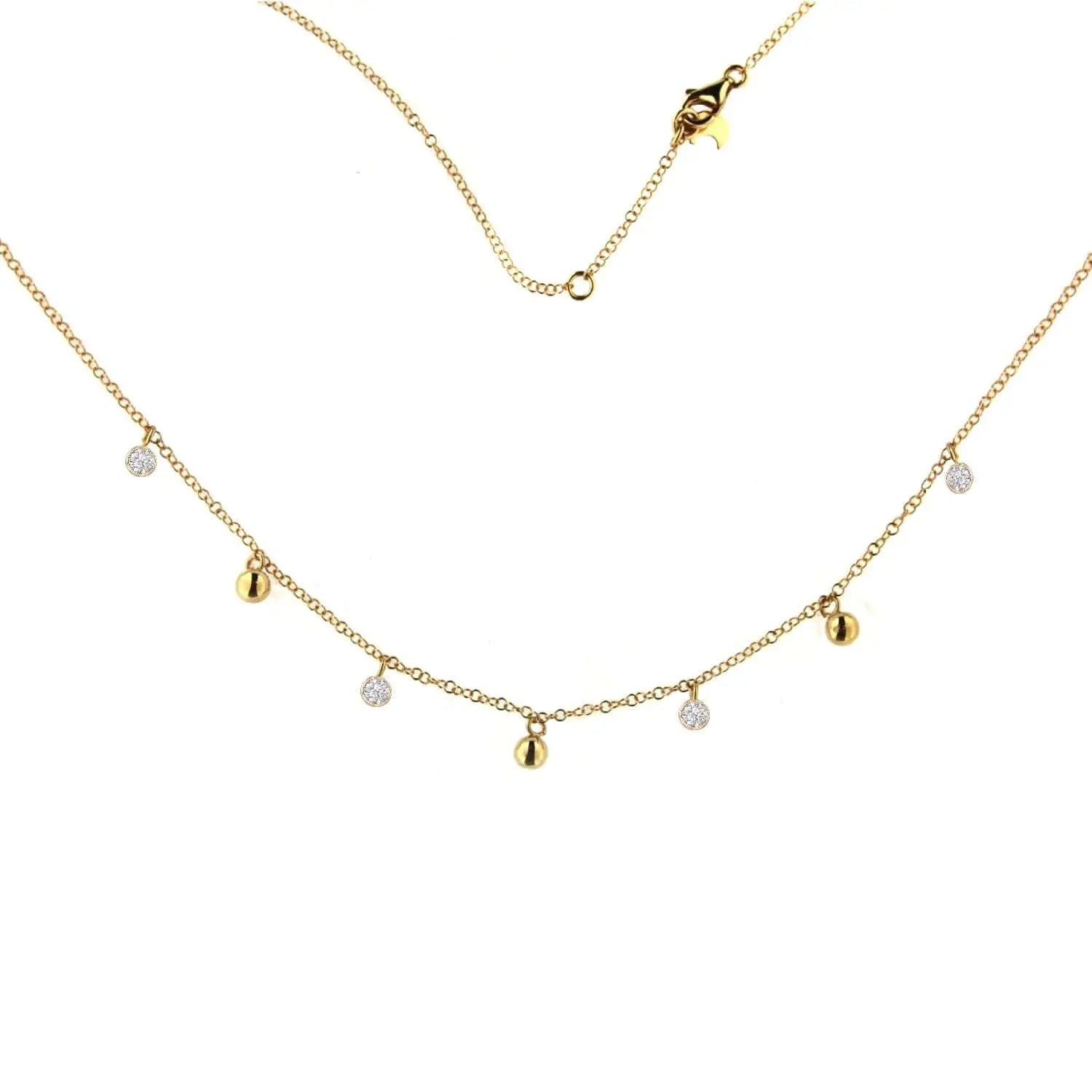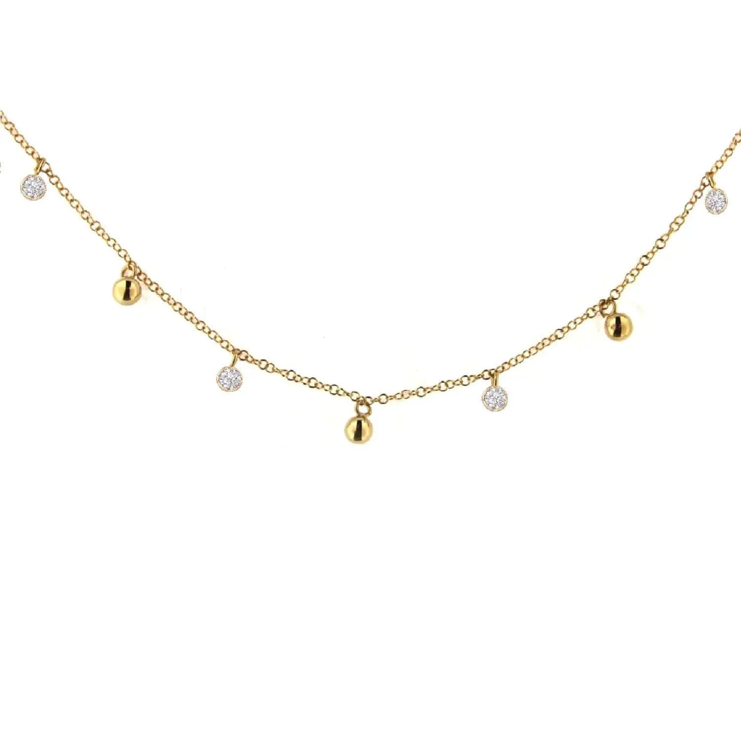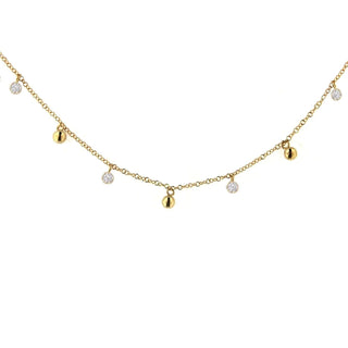 Collar de 17 pulgadas con anillo extra a 16 pulgadas, bolas pulidas de 4 mm de oro amarillo macizo de 18K y circonia Swarovski en bisel de 3.80 mm