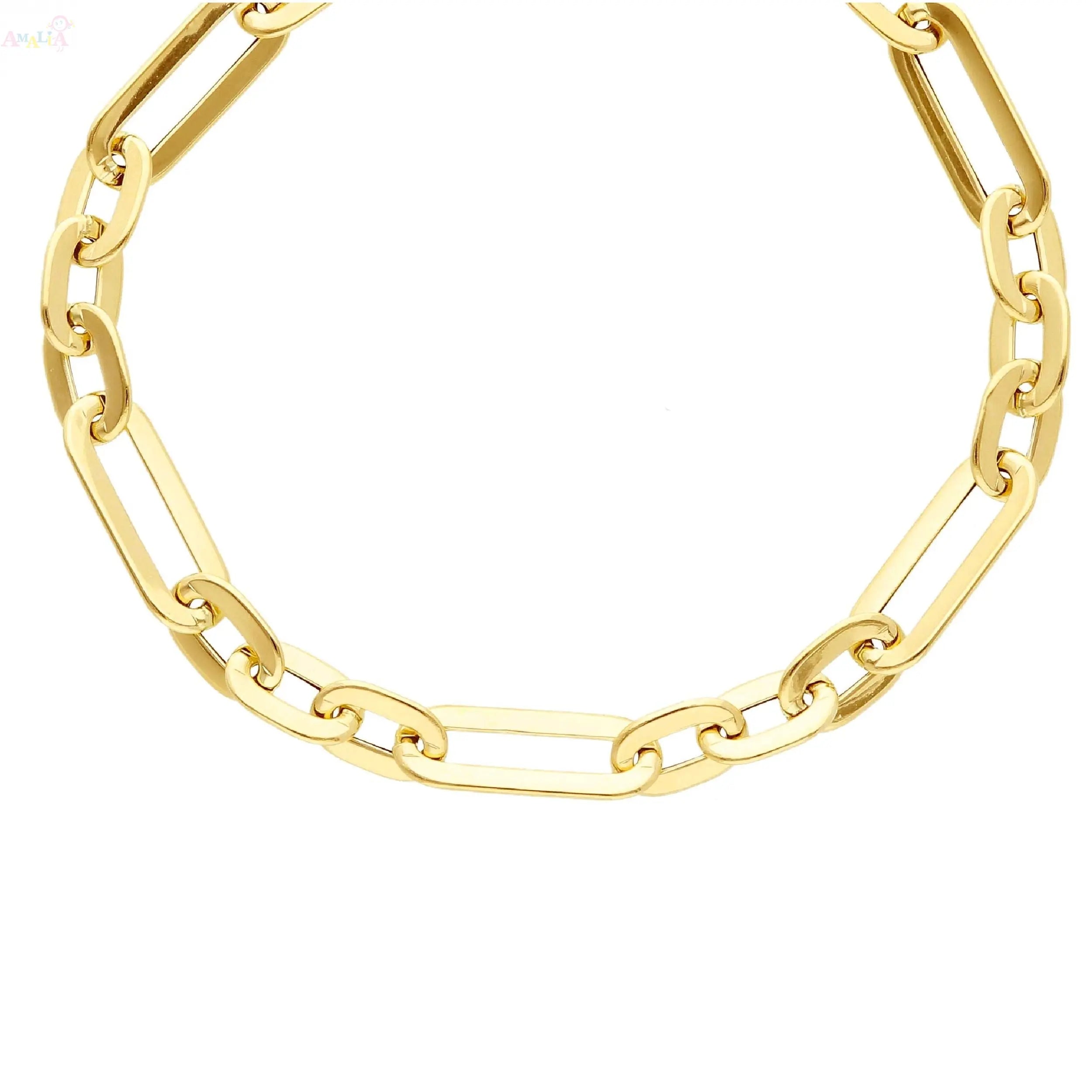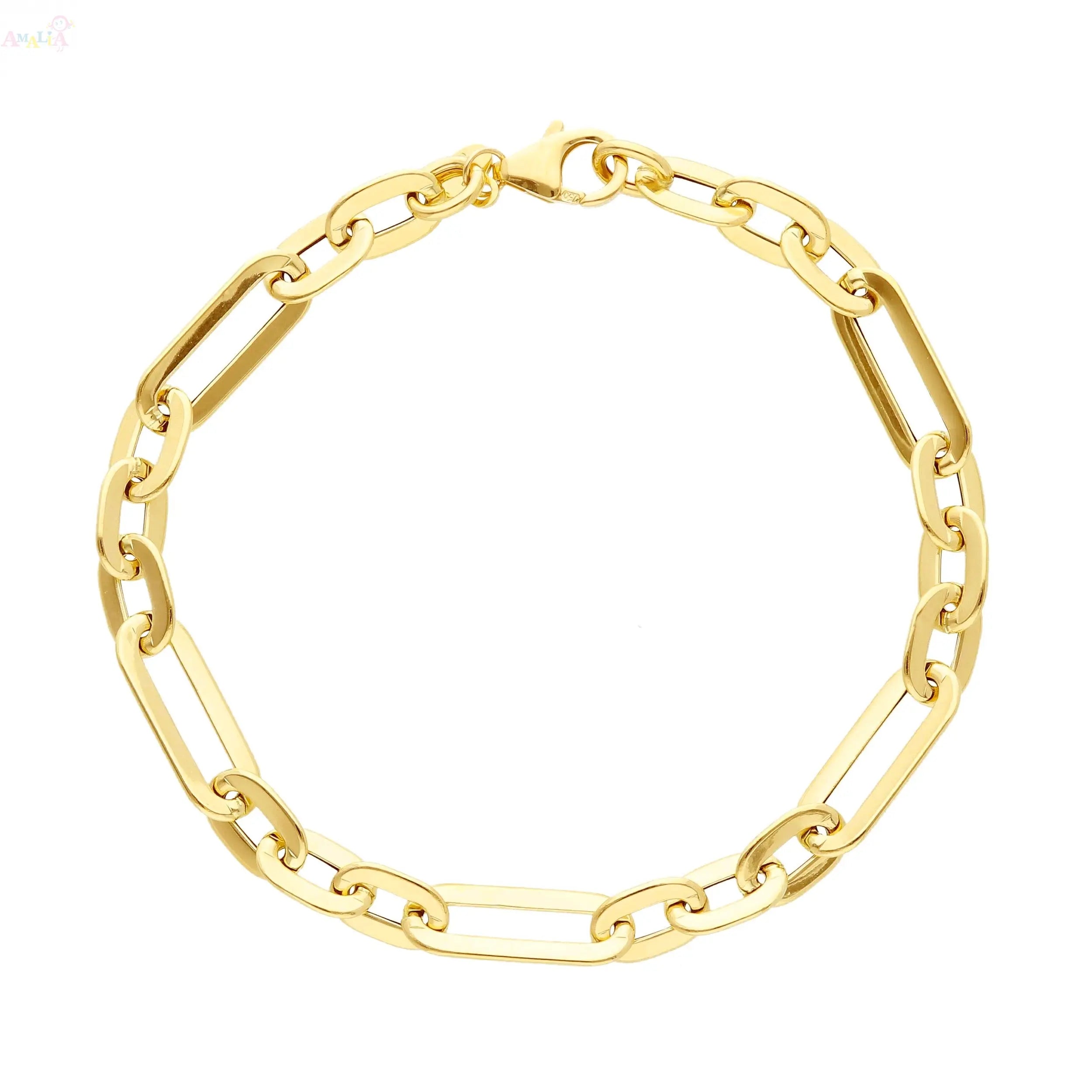 Disfruta del lujo con la Pulsera de Eslabones Huecos Pulidos de Oro Amarillo Macizo 18K, una pieza impresionante diseñada para realzar cualquier conjunto. Hecha en Italia, esta pulsera muestra una artesanía impecable con dos pequeños eslabones ovalados abiertos combinados armoniosamente con un eslabón ovalado grande, creando un diseño sofisticado y elegante.