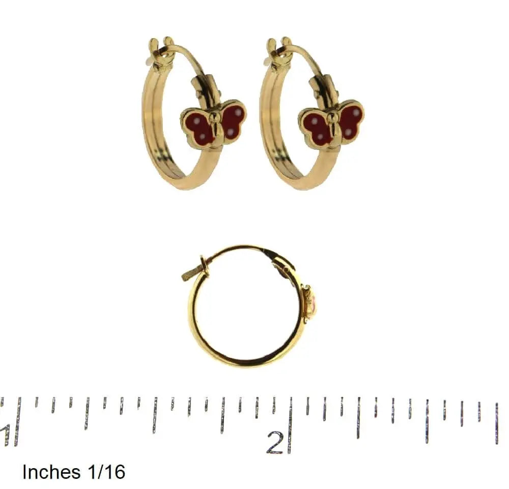 Deleita el amor de tu pequeña por las mariposas con estos encantadores pendientes de aro con mariposa esmaltada en puntos rojos y blancos de oro amarillo macizo de 18K, con un tamaño de mariposa de 10 mm (0,39 pulgadas) y un diámetro interno del aro de 6 mm (0,24 pulgadas). Elaborados en oro amarillo macizo hipoalergénico de 18K, estos pendientes son hermosos y seguros para pieles sensibles. Presentados en una caja de regalo Amalia con una bolsa a juego, son un regalo perfecto para cualquier ocasión especial. ¡Deja que el estilo de tu pequeña amante de las mariposas vuele alto con estos exquisitos pendientes de aro con mariposa en mm y pulgadas!