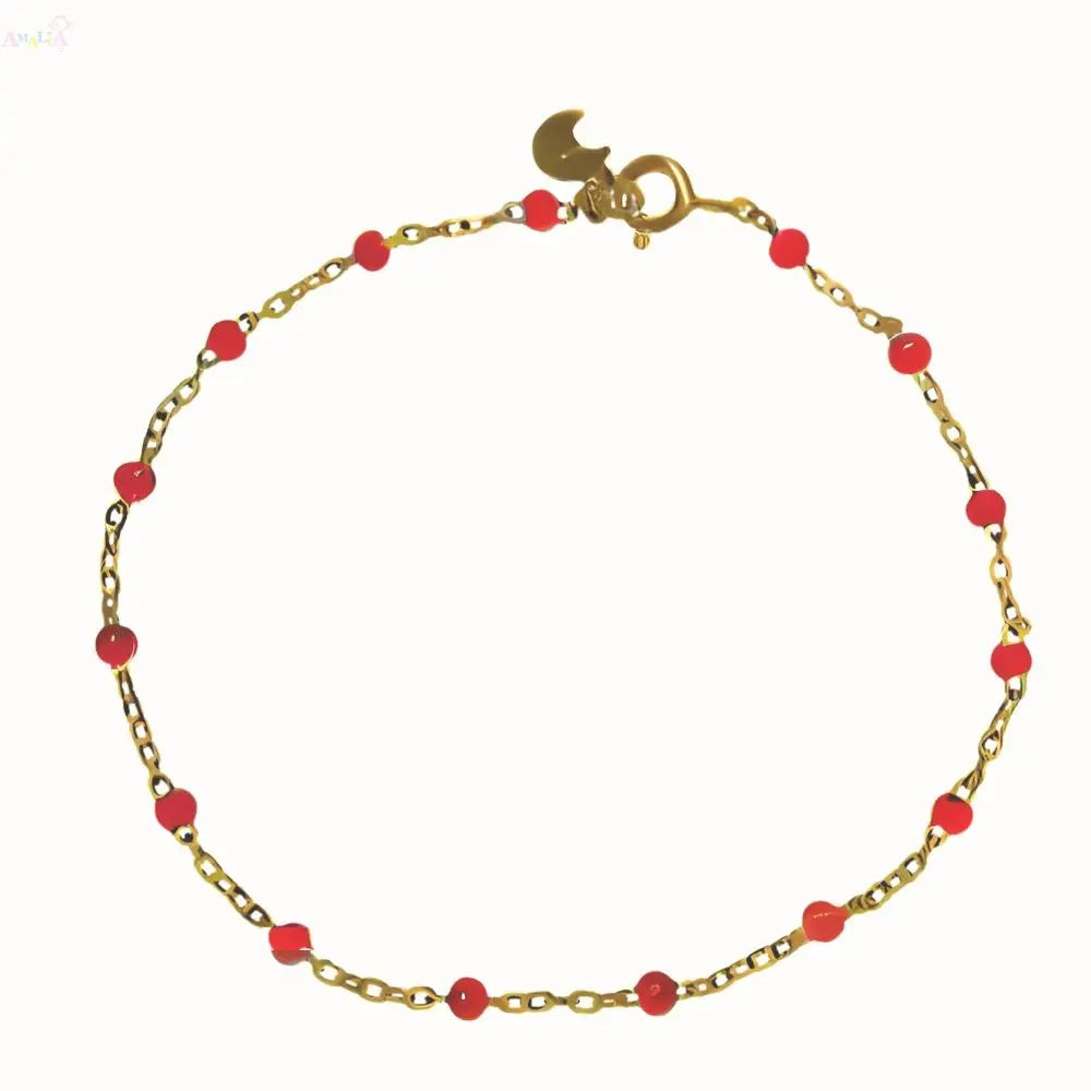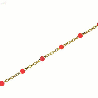 El color rojo simboliza pasión, energía y amor, añadiendo un elemento vivo y dinámico a este diseño atemporal. Cada cuenta está cuidadosamente elaborada para un acabado suave y pulido, resaltando el esmalte rojo profundo y lustroso. Combinada con el brillo intrincado de la cadena con corte de diamante, esta pulsera irradia tanto estilo moderno como encanto tradicional.