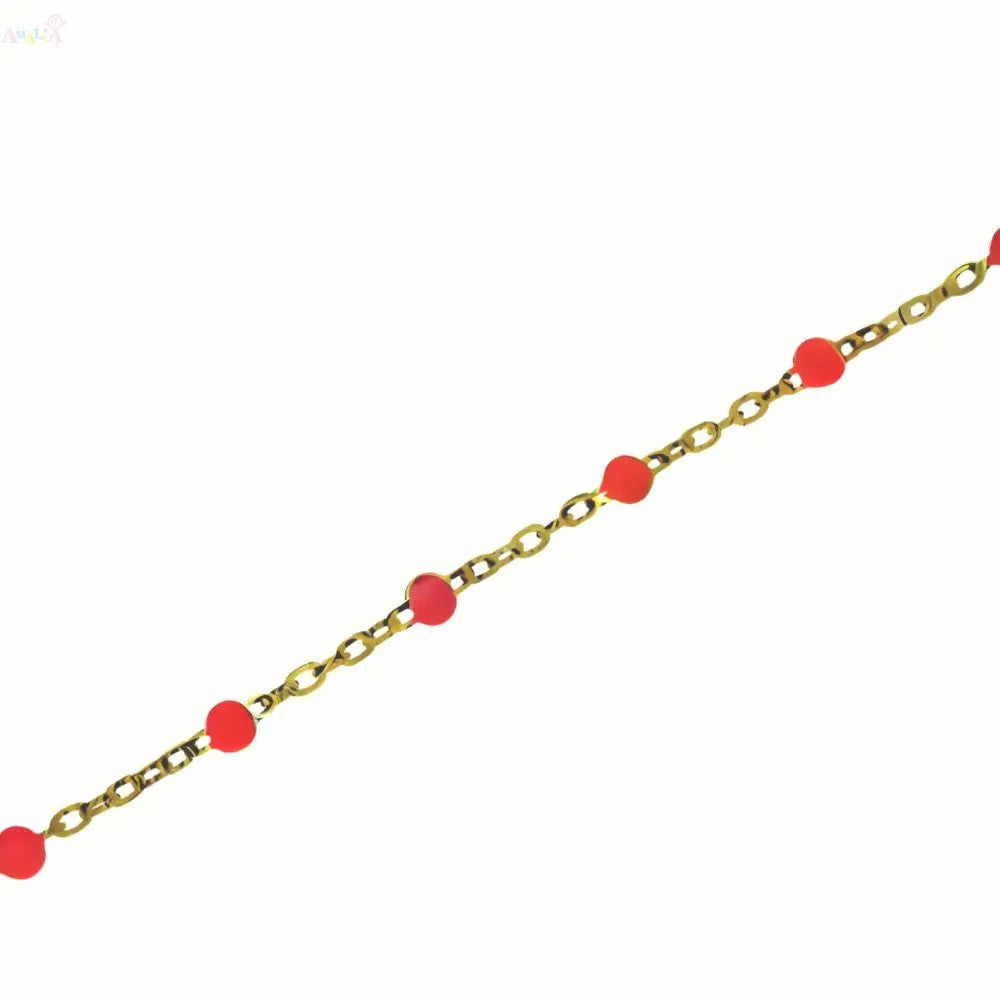 Agrega un toque audaz de sofisticación a tu colección de joyas con la Pulsera de Cuentas de Esmalte Rojo en Oro Amarillo Macizo de 18K con Corte de Diamante. Mide 7 pulgadas de largo y pesa 1.35 gramos, esta exquisita pulsera presenta 15 cuentas de esmalte rojo de oro de 2.50 mm meticulosamente elaboradas, perfectamente espaciadas a lo largo de una delicada cadena de cable con corte de diamante. Las vibrantes cuentas de esmalte rojo crean un contraste llamativo contra el rico oro amarillo, haciendo de esta pulsera un accesorio destacado para cualquier ocasión.