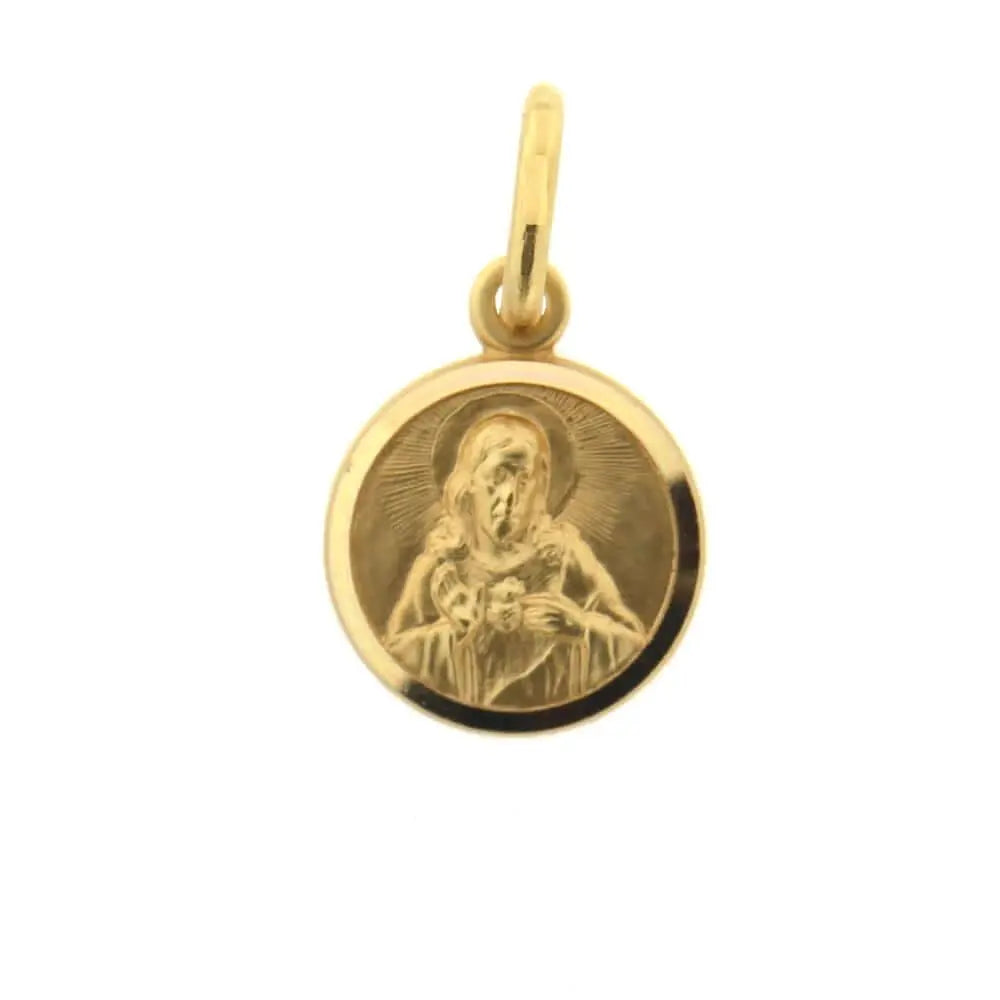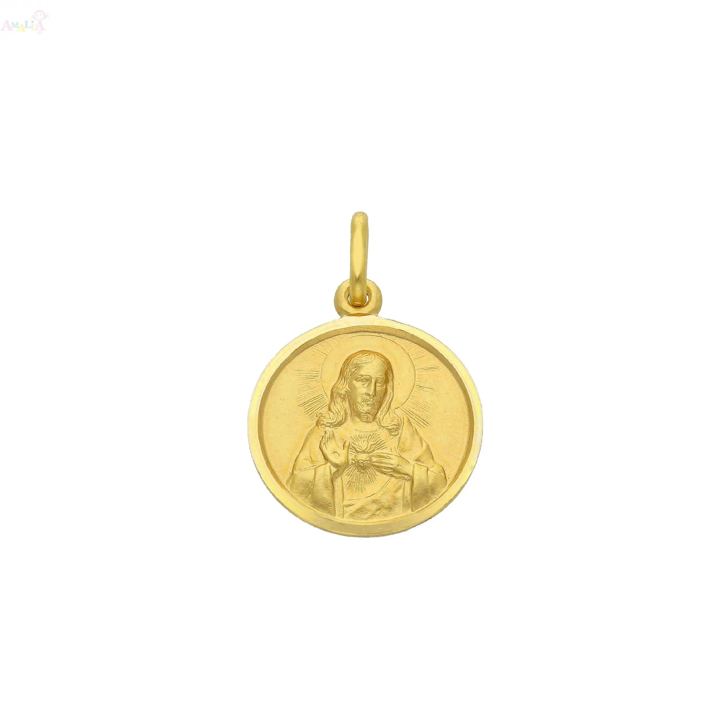 Experimenta la devoción divina con nuestra medalla redonda del Sagrado Corazón de Jesús de 15 mm en oro amarillo macizo de 18K