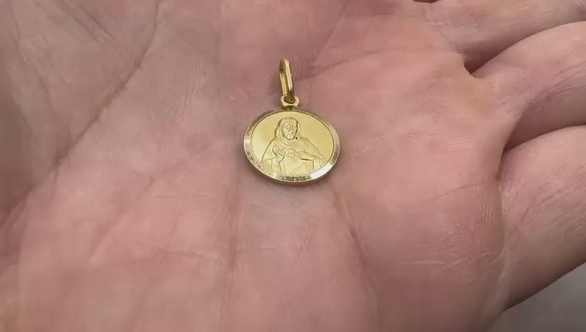 Descubra una obra de arte divina con nuestra Medalla Redonda del Sagrado Corazón de Jesús de Oro Amarillo Macizo 18K de 17 mm. Hecha a mano en Italia con oro amarillo hipoalergénico de 18k, esta medalla mide 17 mm (0,67 pulgadas) de diámetro y es completamente libre de plomo y níquel. Presentada en una elegante caja y bolsa de regalo Amalia, es tanto un tesoro espiritual como un regalo considerado.