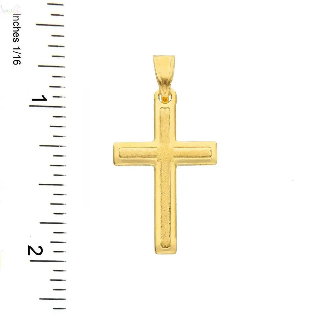 El colgante de cruz satinada y pulida de oro amarillo macizo de 18K es una pieza hermosa y clásica diseñada para añadir un toque de elegancia a cualquier ocasión. Fabricado con oro amarillo macizo hipoalergénico de 18k, este colgante semihueco presenta un acabado satinado impresionante con un borde pulido que realza su atractivo atemporal.