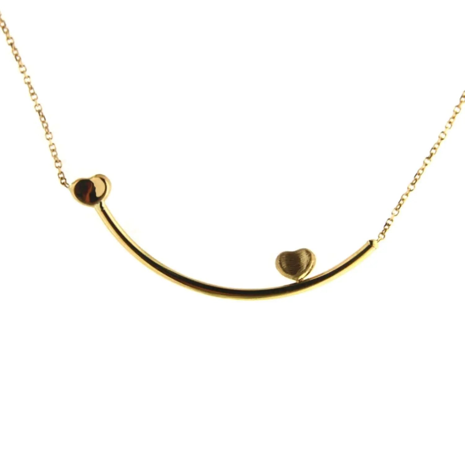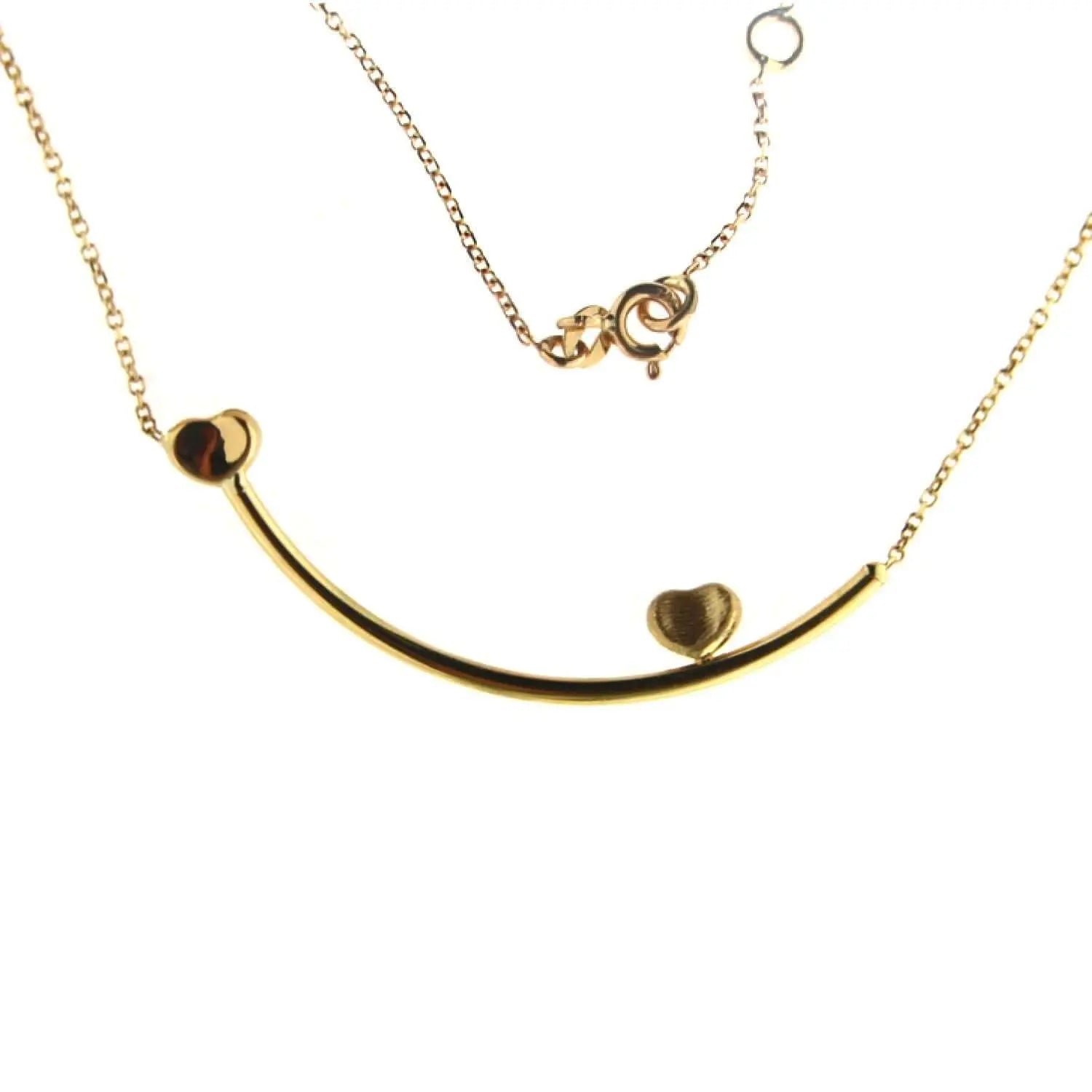Collar de barra curva de 16 pulgadas con corazones satinados y pulidos de oro amarillo macizo de 18k con anillo extra a 15 pulgadas