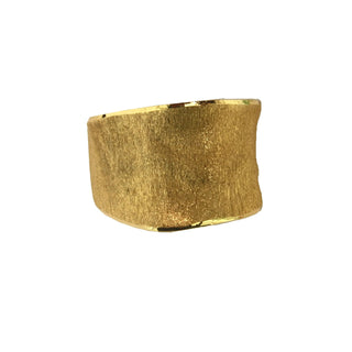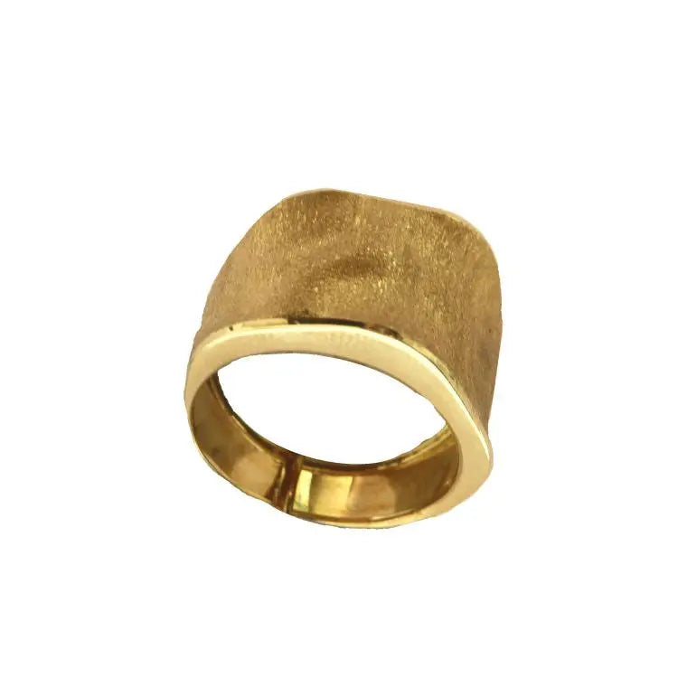 Abraza la combinación de belleza clásica y diseño moderno con el Anillo de Banda Ondulada con Acabado Satinado Cepillado en Oro Amarillo Macizo de 18K, un accesorio impresionante que complementa cualquier estilo.