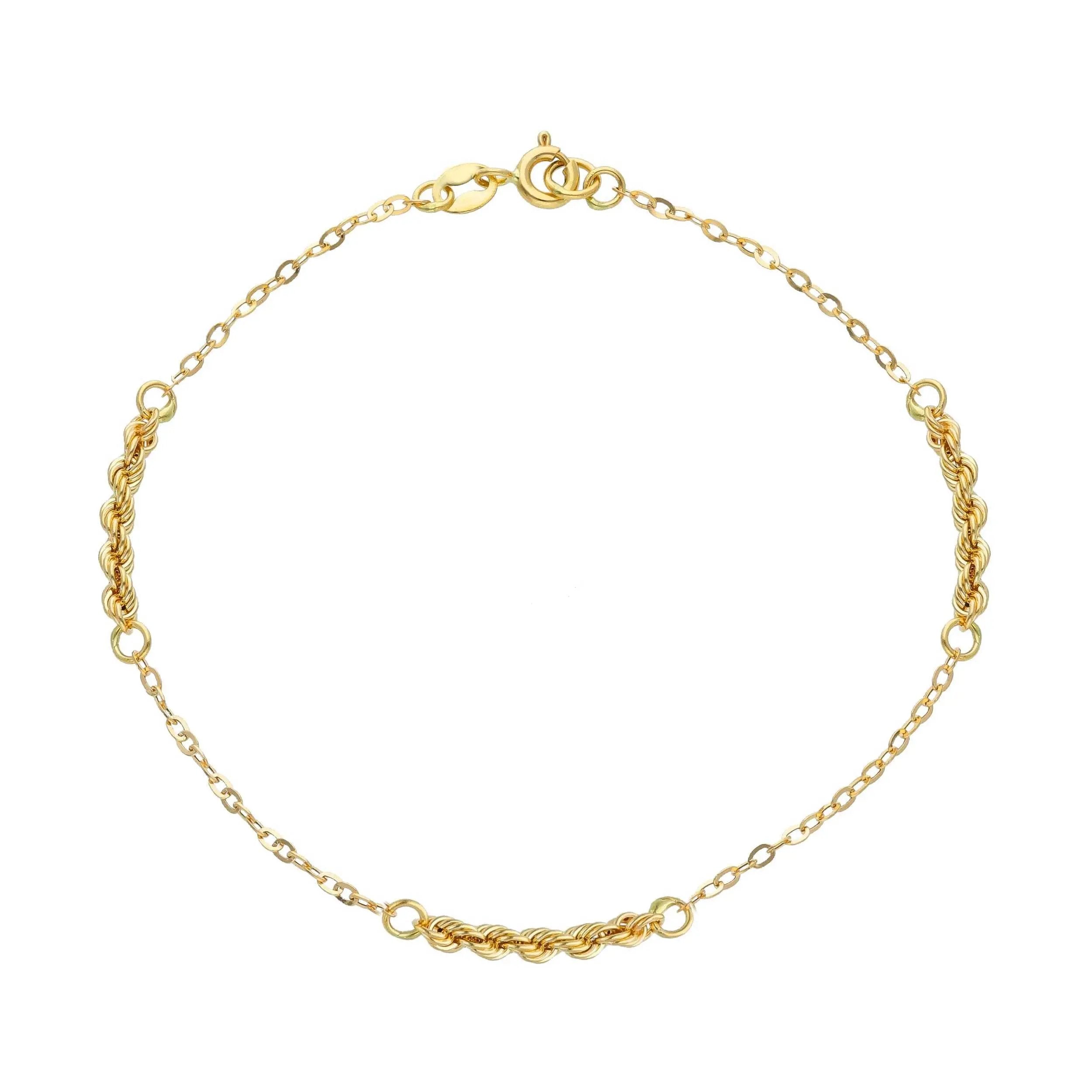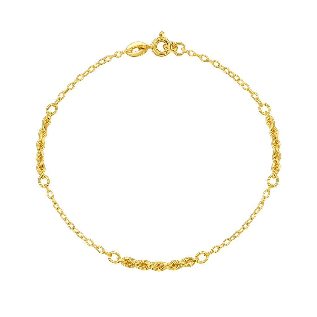 Eleva tu elegancia diaria con nuestro brazalete de cadena Singapore y Cable en oro amarillo macizo de 18K, una pieza atemporal creada para brillar con sofisticación y arte italiano. Hecho de oro amarillo macizo hipoalergénico de 18K, este brazalete combina bellamente movimiento delicado con textura radiante. Cuenta con tres segmentos de 0.70 pulgadas de cadena Singapore brillante, cada uno elegantemente separado por una cadena cable con corte diamante que capta la luz desde todos los ángulos.