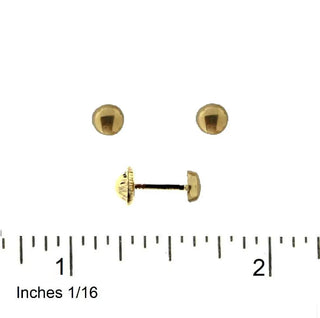 Pendientes pequeños de círculo abultado con puntos cubiertos y cierre de tornillo en oro amarillo macizo de 18K