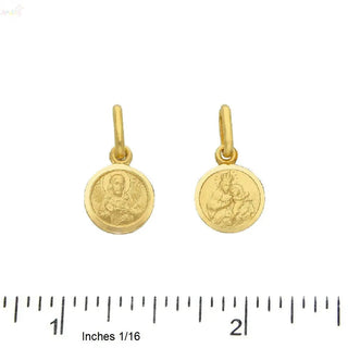 Celebra tu fe con nuestra Medalla Pequeña Redonda de Escapulario en Oro Amarillo Macizo de 18K de 9 mm, un símbolo elegante de devoción y compromiso espiritual. Este exquisito colgante presenta el Sagrado Corazón de Jesús en el frente y Nuestra Señora del Carmen en la parte trasera, elaborado con meticulosa atención al detalle. Con un diámetro de 9 mm (0.35 pulgadas), su tamaño delicado lo hace ideal para usar a diario, asegurando que lleves un recordatorio significativo de tus creencias dondequiera que vayas.