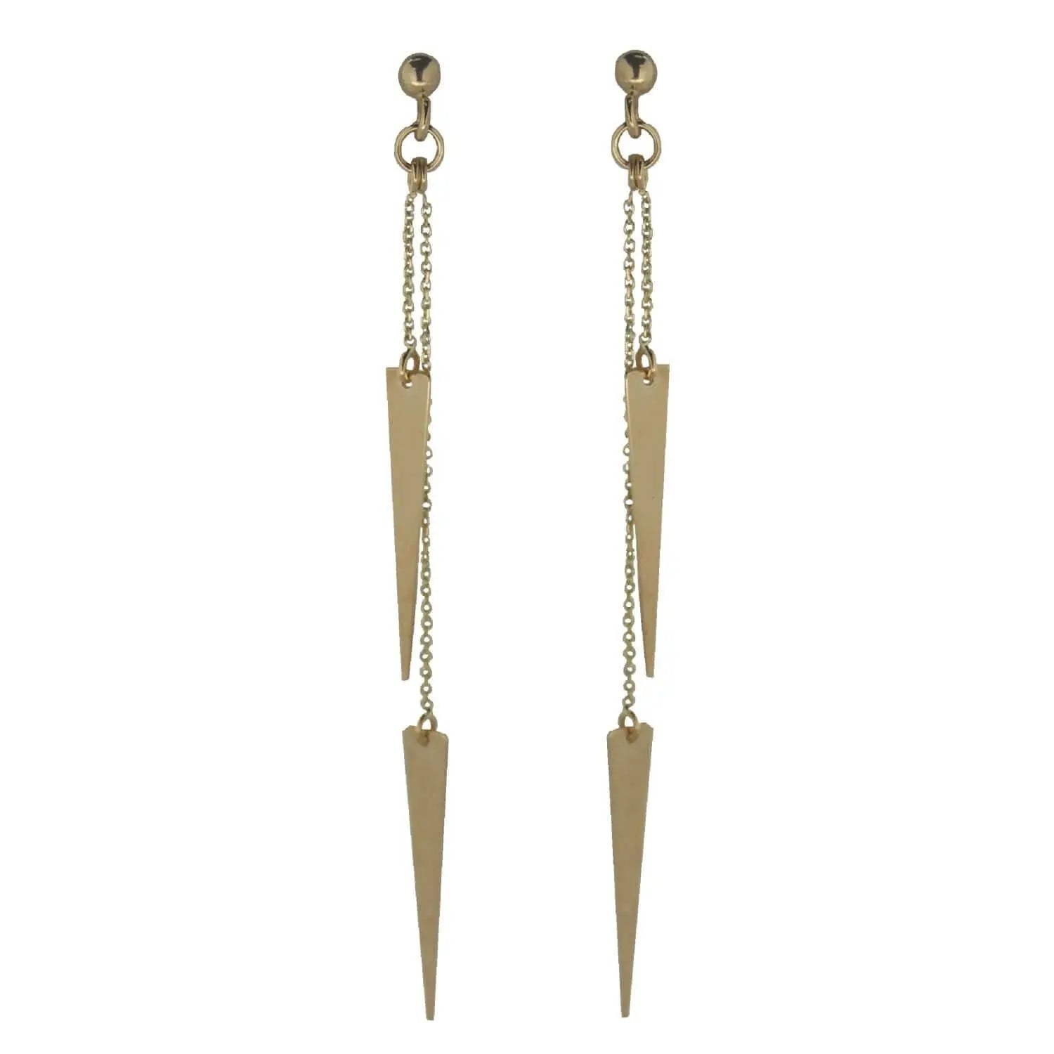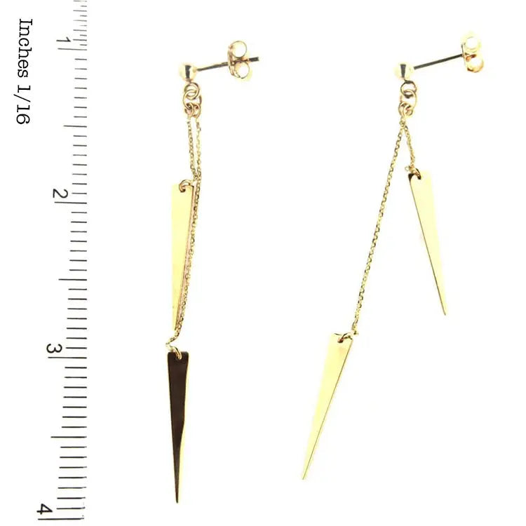 Eleva tu estilo a nuevas alturas con nuestros exquisitos pendientes colgantes de triángulos delgados pulidos de oro amarillo macizo de 18K, meticulosamente elaborados en Italia. Estos impresionantes pendientes cuentan con una cadena de corte diamante tipo cable, que añade un toque de sofisticación y movimiento a tu look, tamaño 3 pulgadas. Fabricados con oro amarillo hipoalergénico de 18k, garantizan tanto estilo como comodidad. Cada par viene elegantemente presentado en nuestra caja y bolsa de regalo Amalia, lo que los convierte en la elección perfecta para un regalo atemporal y considerado o una adición lujosa a tu propia colección.