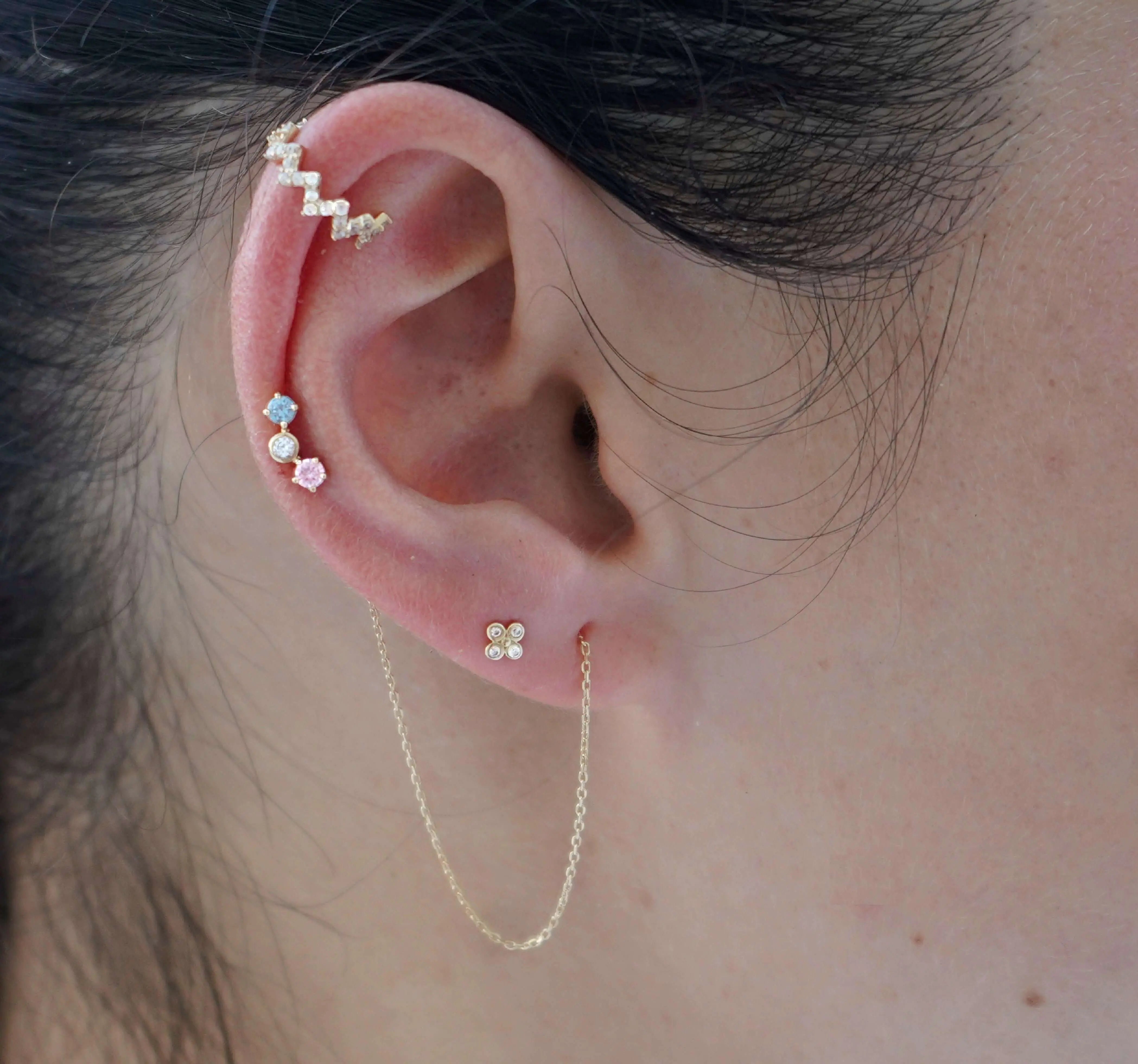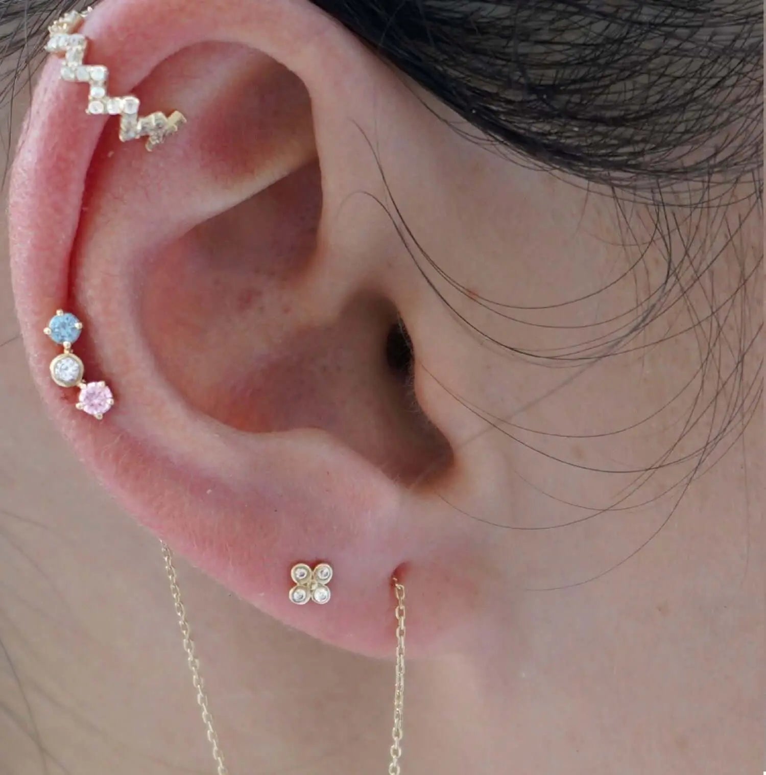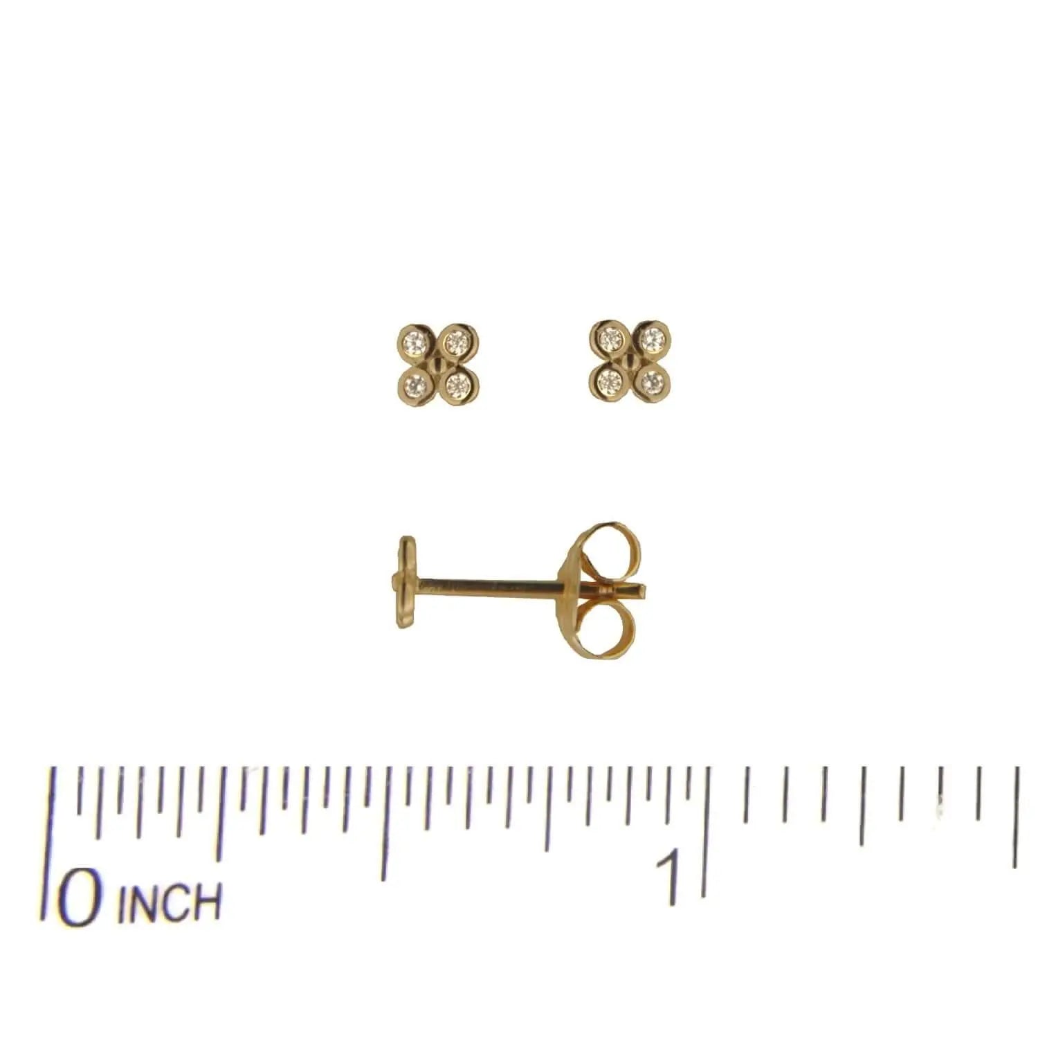Eleva tu estilo con nuestros exquisitos Pendientes Pequeños de Trébol de Cuatro Hojas en Oro Amarillo Macizo de 18k, con Circonitas engastadas en bisel. Cada hoja de estos pendientes pequeños pero cautivadores está adornada con una piedra de circonita brillante, delicadamente engastada en un bisel para mayor elegancia. Estos pendientes miden delicadamente 0.13 x 0.13 pulgadas (3.40 x 3.40 mm) y están fabricados con oro hipoalergénico de 18k para tu comodidad. Como un toque especial, tu compra incluye una caja y bolsa de regalo Amalia, haciendo de estos pendientes un regalo perfecto para ti o un ser querido. Abraza la belleza atemporal con estos impresionantes pendientes de trébol hoy.
