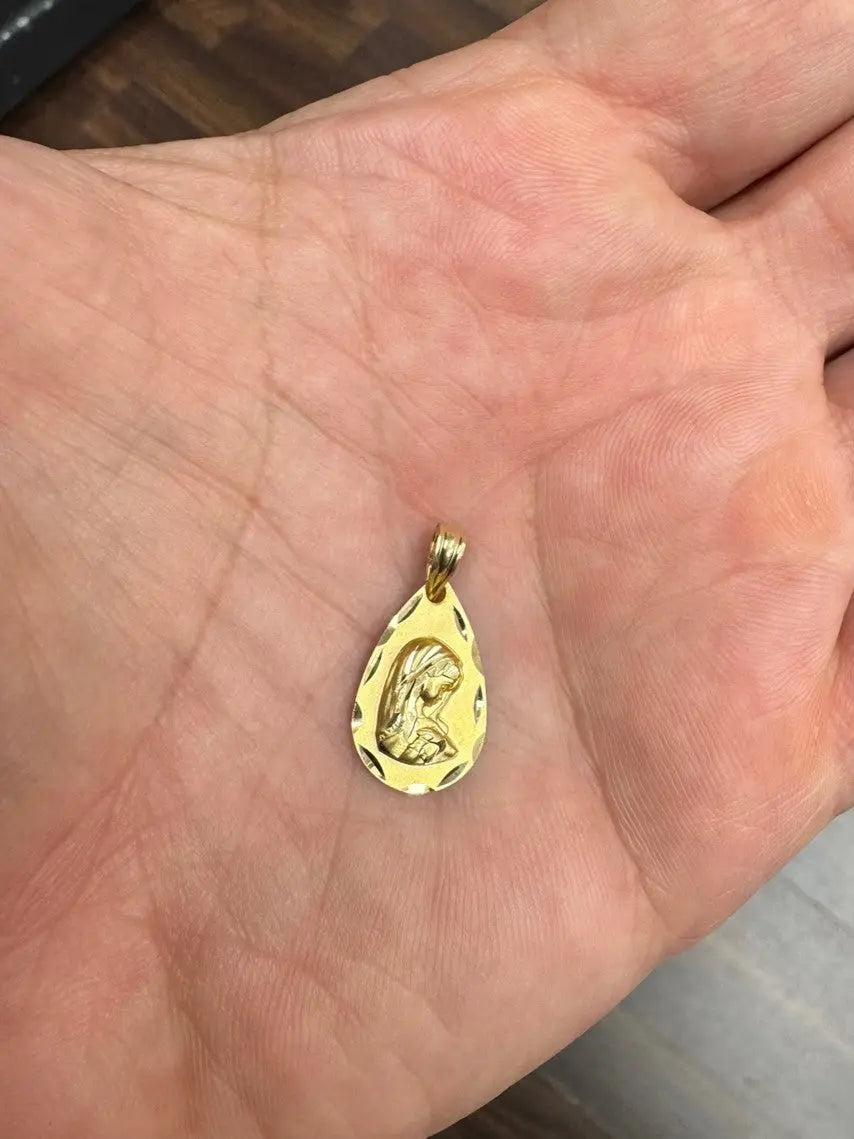 Presentamos la Medalla de Lágrima de Niña Virgen María en Oro Amarillo Macizo de 18K, un hermoso emblema de protección, pureza y fe. Esta exquisita medalla muestra a la Virgen María como niña, fabricada en oro amarillo macizo hipoalergénico de 18K, lo que la hace suave para todo tipo de piel. Con unas medidas de 0.75 x 0.41 pulgadas, la medalla está realzada por bordes cortados a mano con diamante que aumentan su elegancia y brillo.