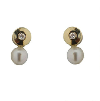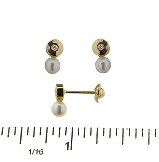 Pendientes de oro amarillo de 18k con diamante y perla en la parte trasera (perla de 4 mm, diamante de 0.03 ct tw)