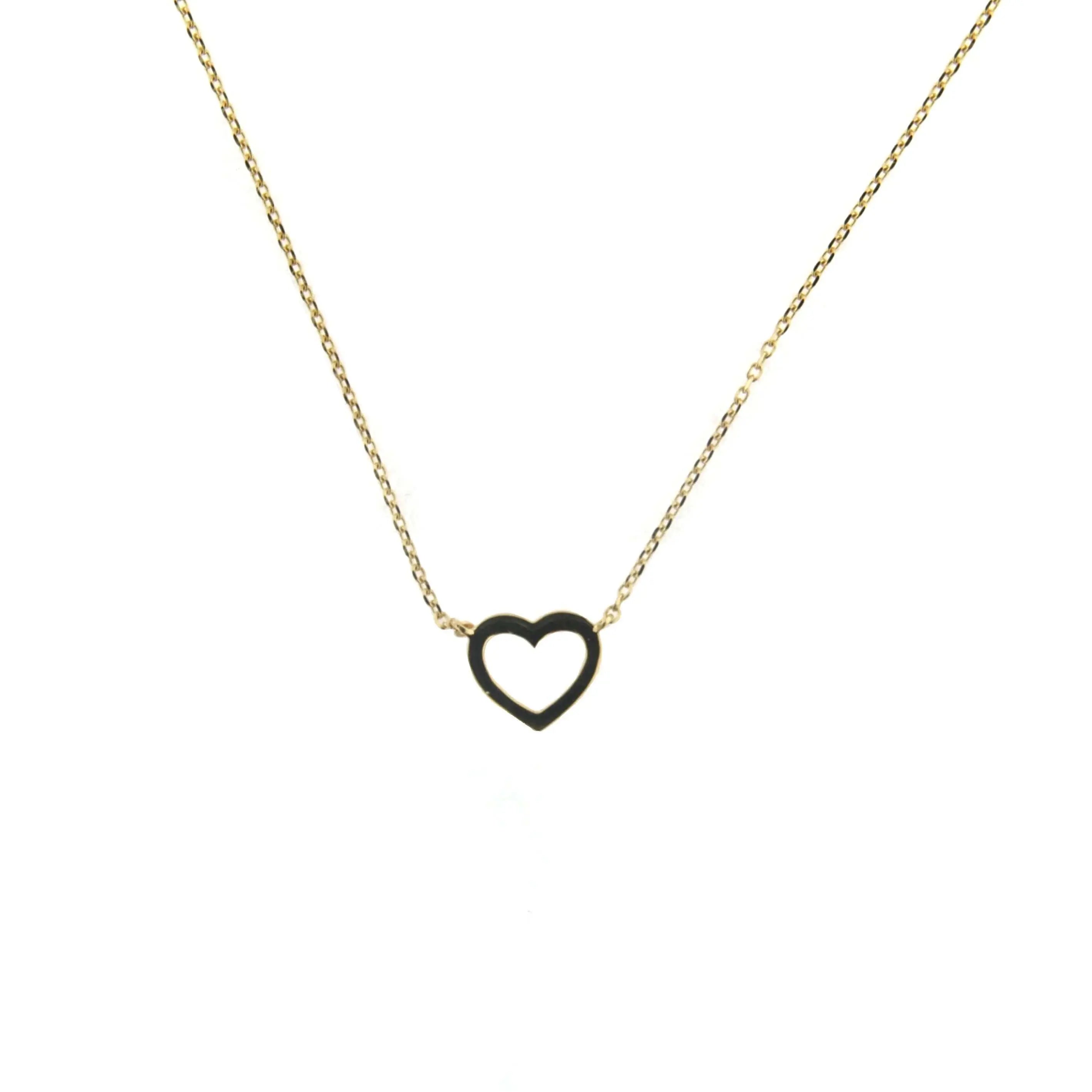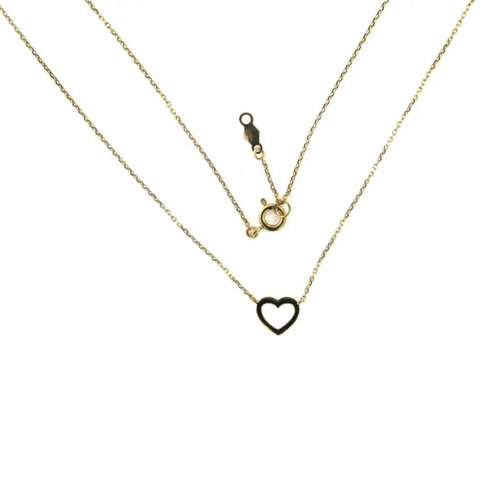 Collar de corazón de oro amarillo de 18K de 16 pulgadas con anillo extra a 15 pulgadas