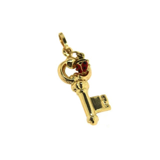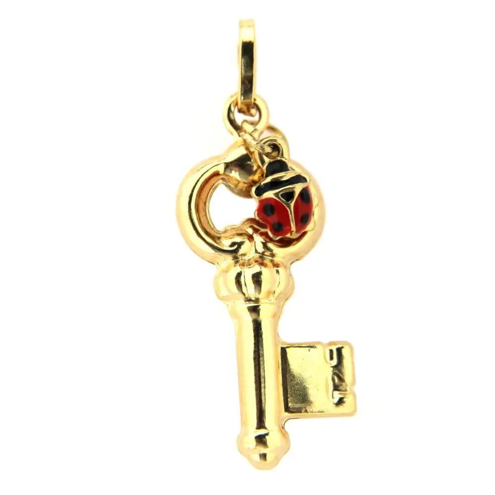 Colgante de llave de oro amarillo de 18K y mariquita de esmalte rojo