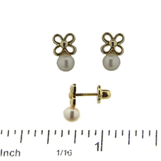 Atesora los momentos especiales de la vida con los pendientes de tornillo con flor abierta y perla en oro amarillo de 18K
