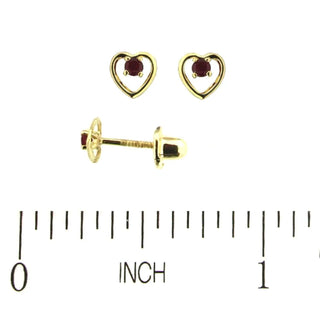 Deleita a tu pequeña con los encantadores pendientes de cierre de tornillo con corazón abierto y rubí en oro amarillo de 18K. Con un diámetro de 0.20 pulgadas (5 mm), estos pendientes están diseñados cuidadosamente para niñas desde recién nacidas hasta 9 años, combinando elegancia y comodidad en un adorable accesorio.