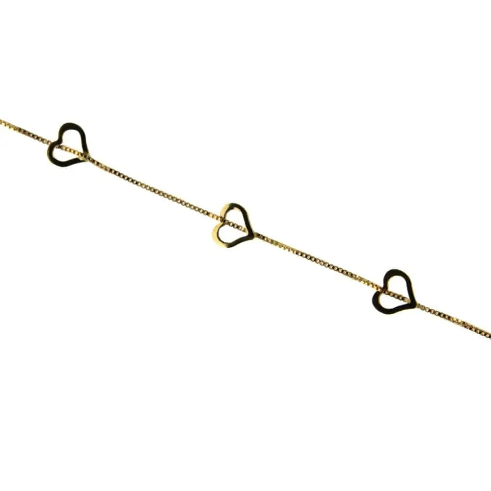Brazalete de corazones abiertos de oro amarillo de 18k de 5.8 pulgadas