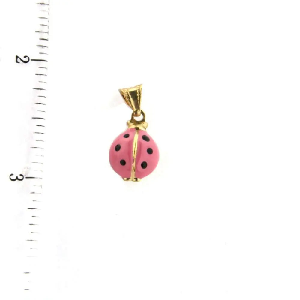 Charm de mariquita con esmalte rosa en oro amarillo de 18K (10mm/19mm con asa)