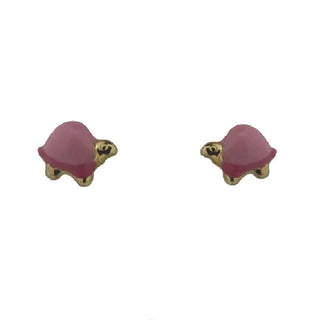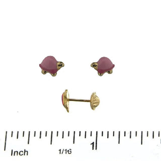 Pendientes con cierre de tornillo cubiertos de esmalte rosa con tortuga de oro amarillo macizo de 18K