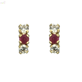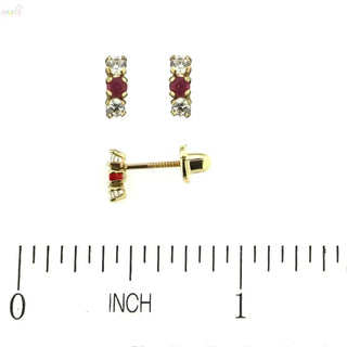 Eleva el estilo de tu pequeño con los pendientes de oro amarillo 18K con rubí y circonia y cierre de rosca cubierto
