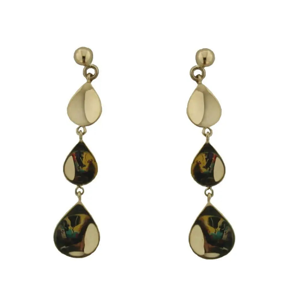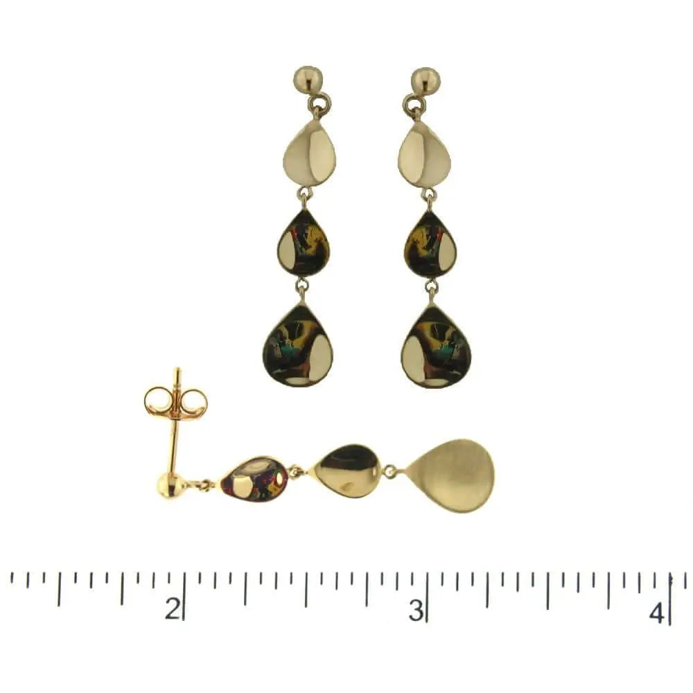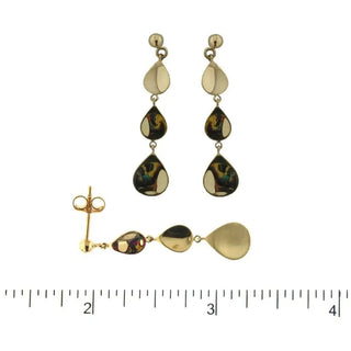Aretes de poste con tres gotas brillantes de oro amarillo de 18K, aproximadamente 1.4 pulgadas de largo.