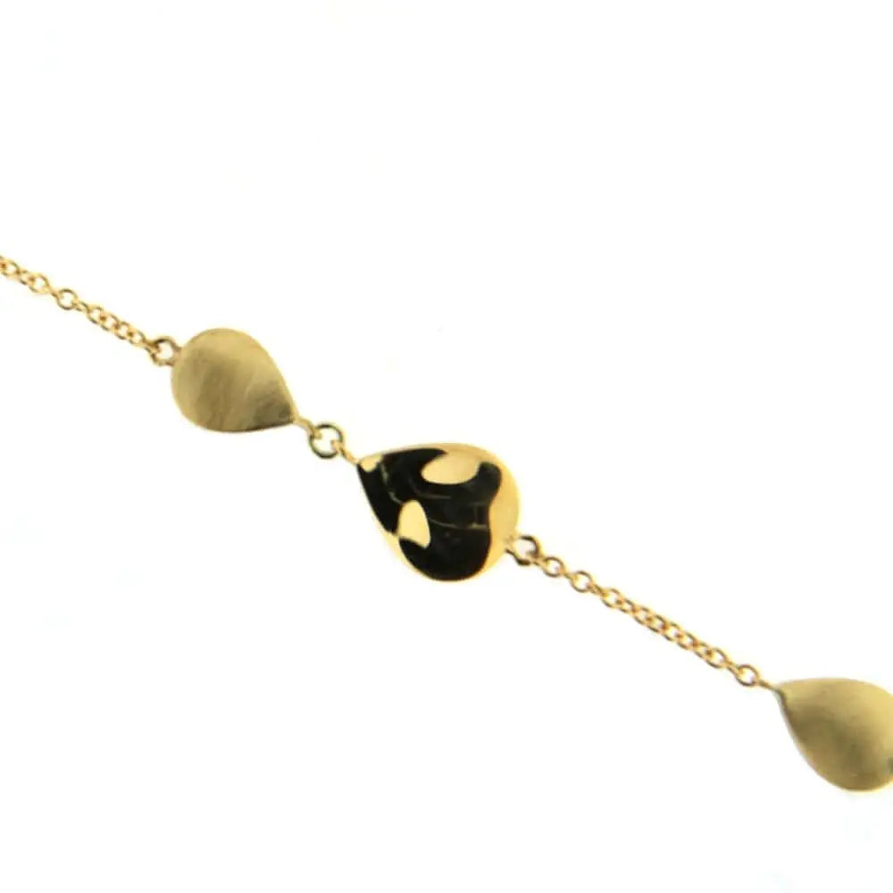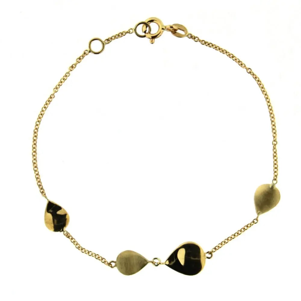 Brazalete de dos gotas de lágrima satinadas y dos brillantes en oro amarillo de 18K, 7 pulgadas con anillo extra a 6.5 pulgadas