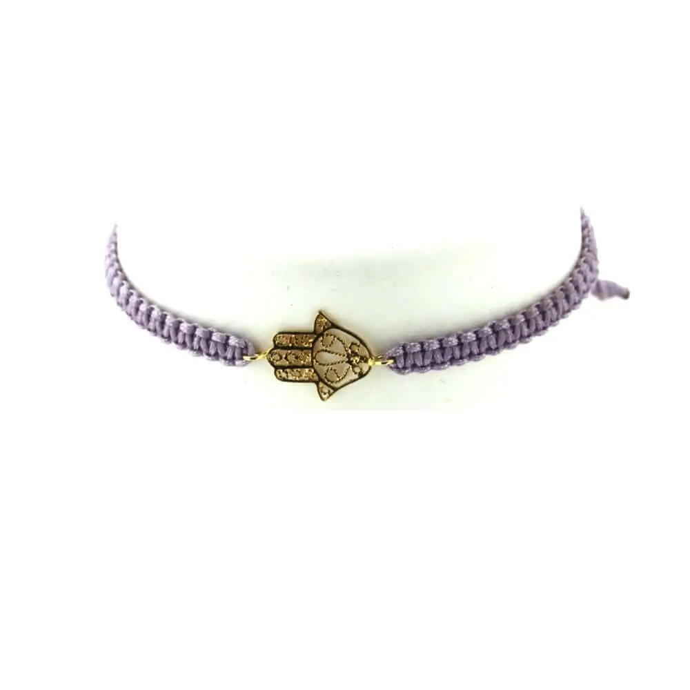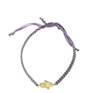 Brazalete de cordón lila Hamsa de oro amarillo de 18 quilates