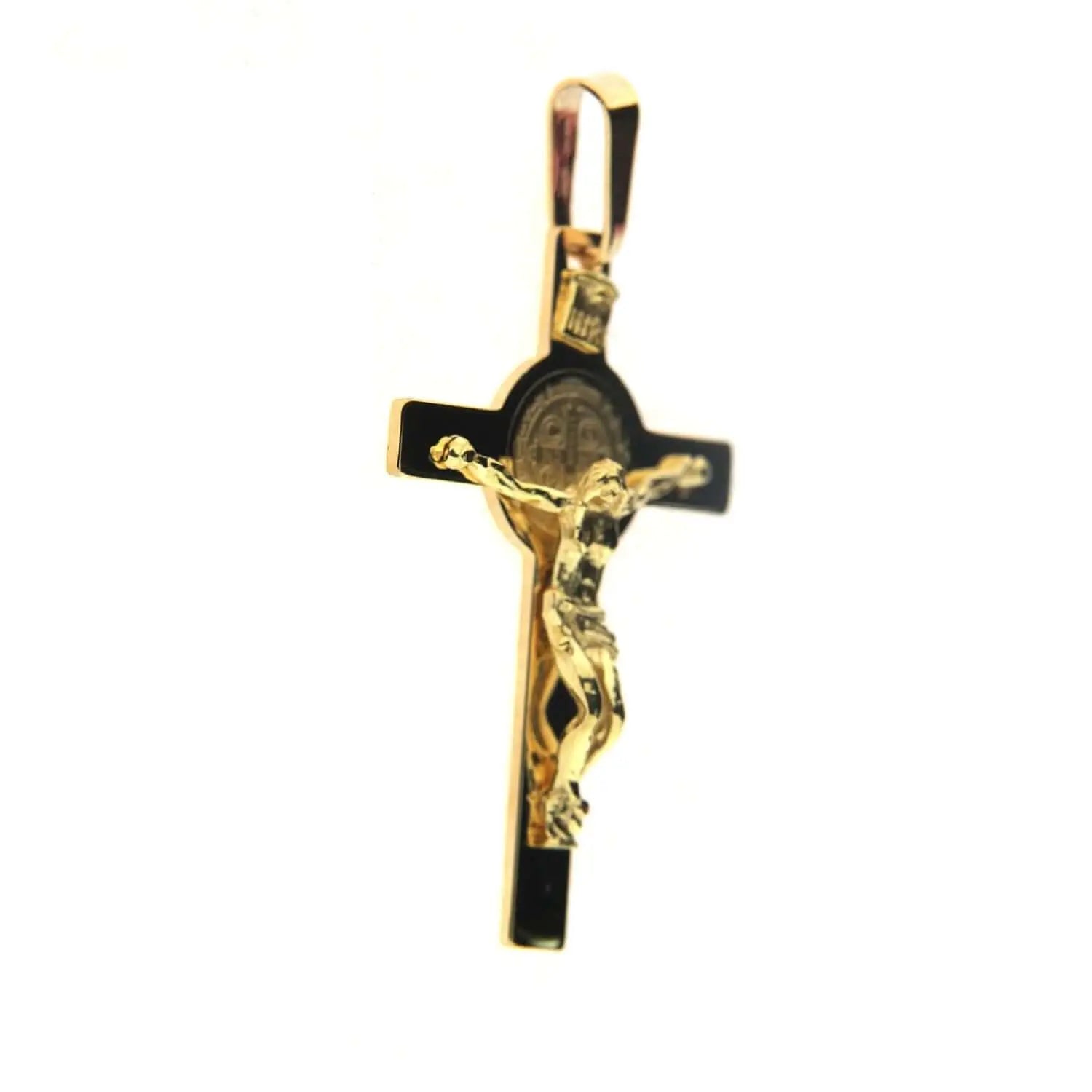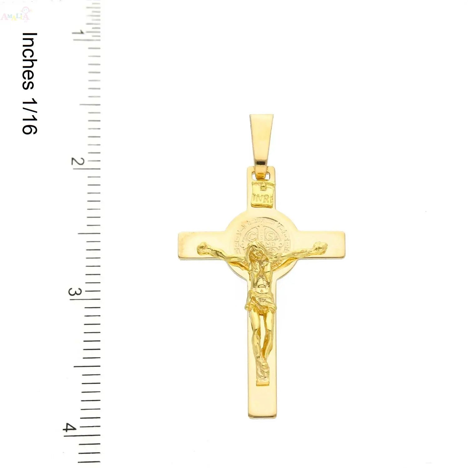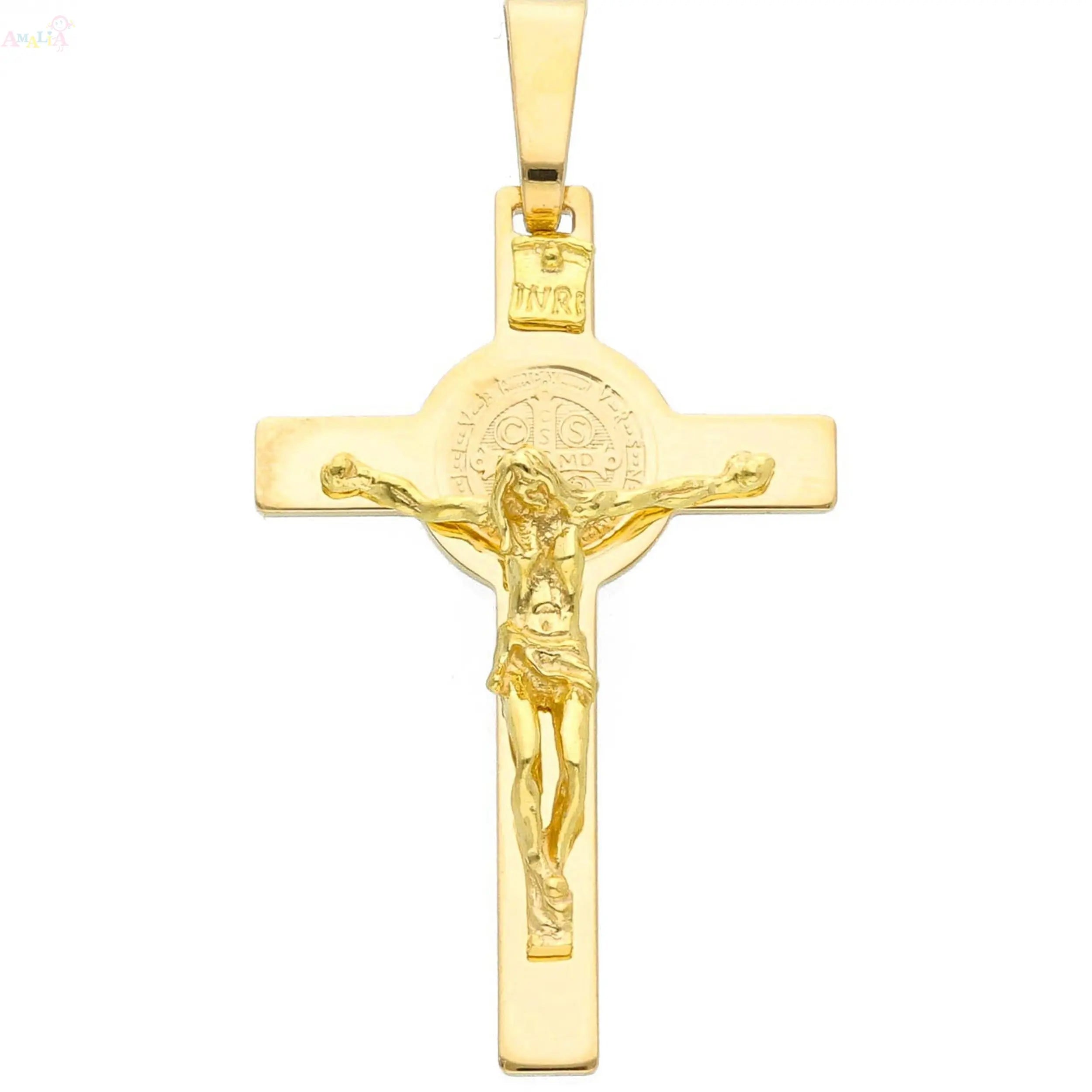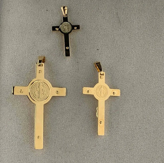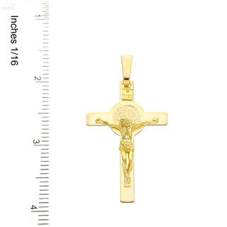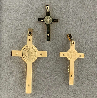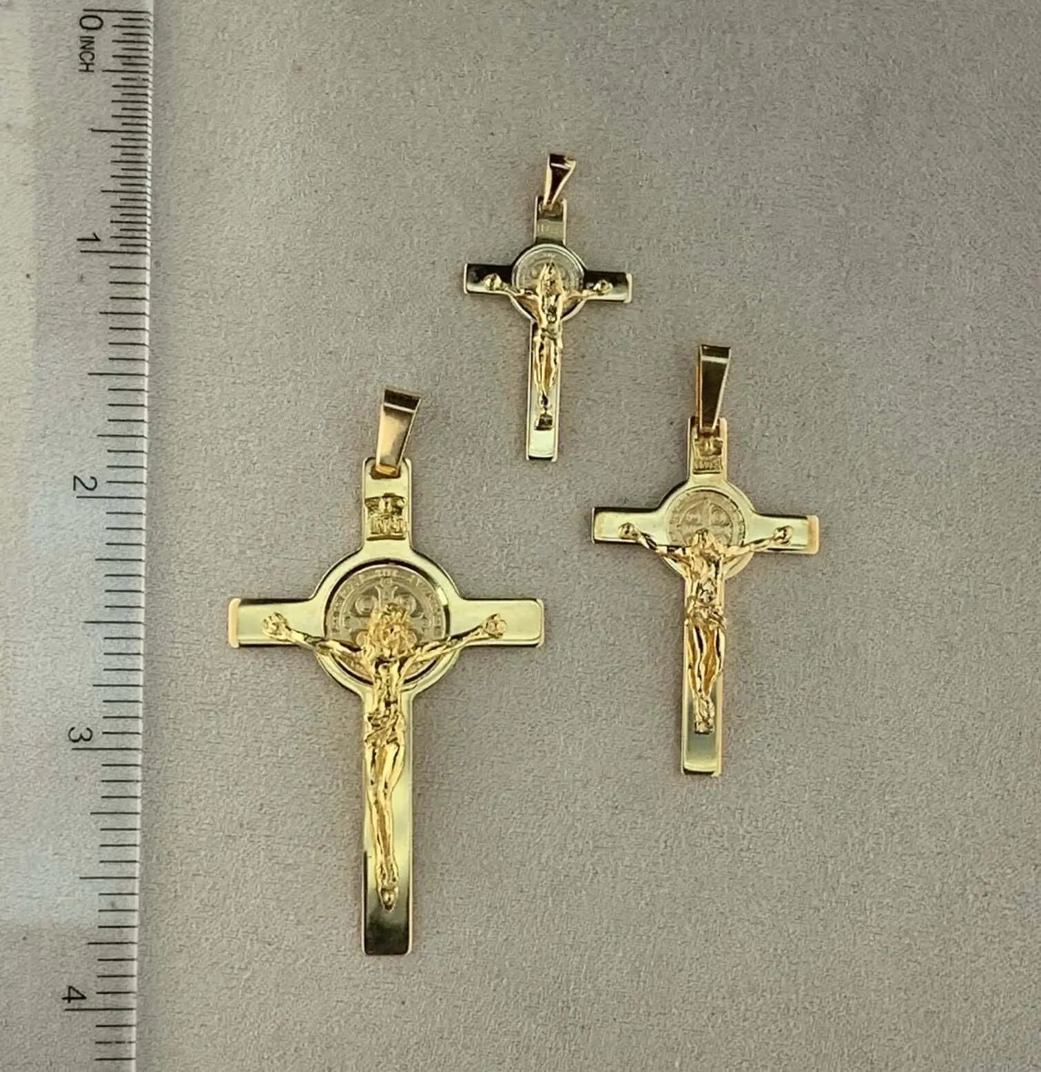 Descubre la elegancia divina de nuestro colgante de crucifijo con medalla de San Benito en oro amarillo macizo de 18K, una obra maestra de joyería religiosa que combina la fe con un diseño sofisticado. Disponible en tres tamaños distintos, este colgante presenta una impresionante medalla de San Benito, finamente colocada en el centro del crucifijo con el diseño auténtico del Jubileo de 1880. Cada tamaño ofrece un peso diferente, que va desde 3 gramos hasta 9 gramos, adaptándose a diversos gustos y estilos.