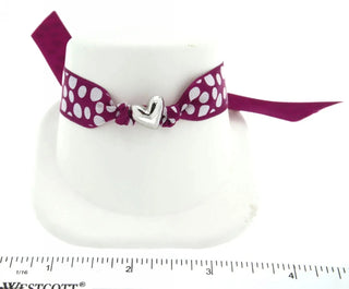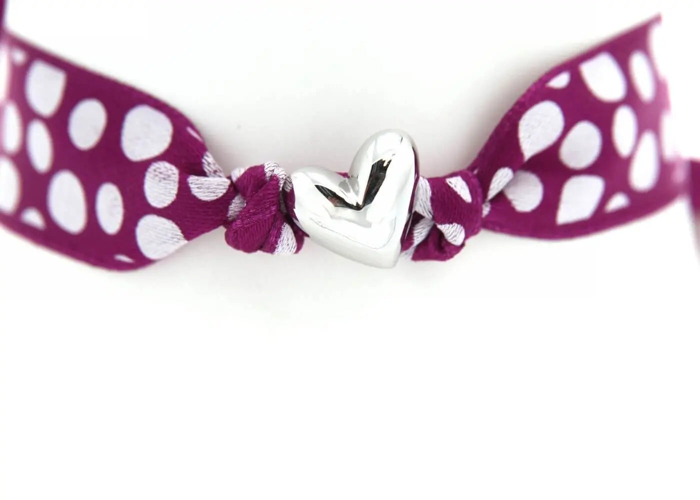Colgante de corazón pulido de plata esterlina morado con puntos blancos Pulsera de cinta.