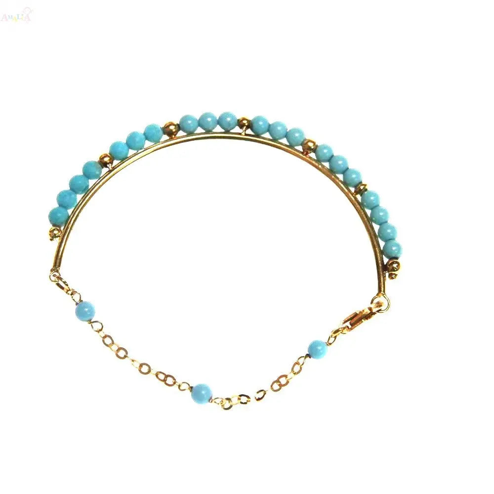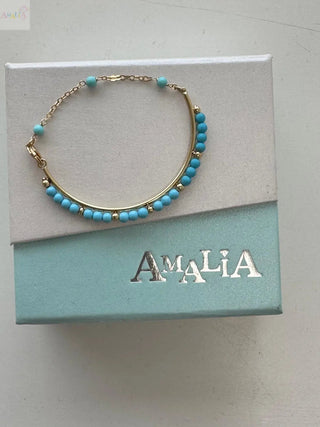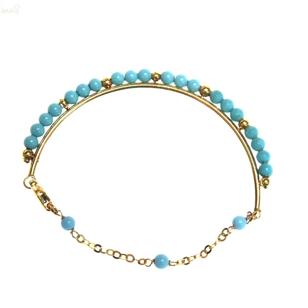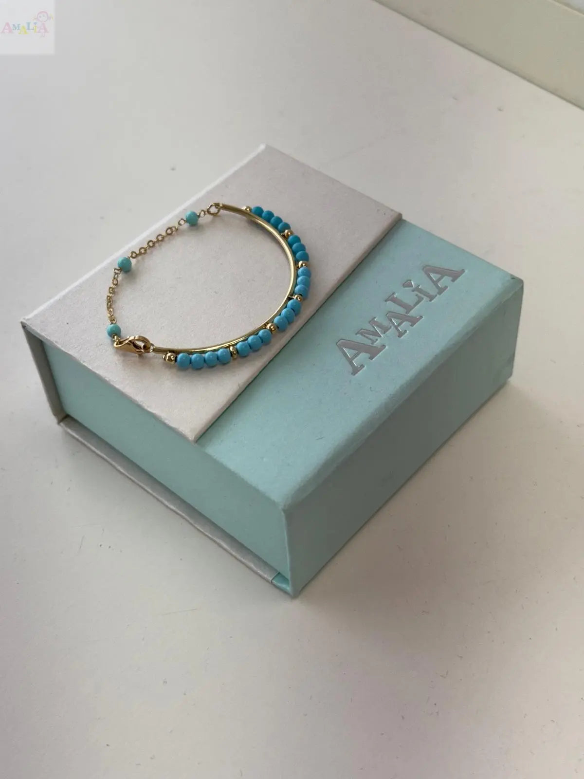 Célébrez les étapes de votre petit avec le Bracelet Demi-Jonc en Or Jaune Massif 18K et Turquoise, un parfait mélange d'élégance et de praticité. Doté d'un design distinctif de demi-jonc, ce bracelet est adapté aux enfants de la naissance à 4 ans. Les perles en pâte de turquoise vibrante ajoutent une touche de couleur, créant une pièce charmante qui se distingue par sa beauté et sa signification.