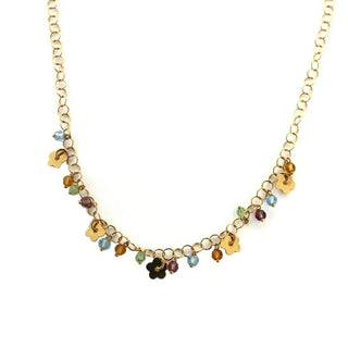 Collier cœur et fleur multicolore en or jaune massif 18 carats