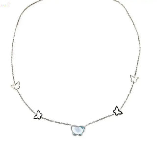 Collier papillons en topaze bleue centrale en or blanc massif 18 carats
