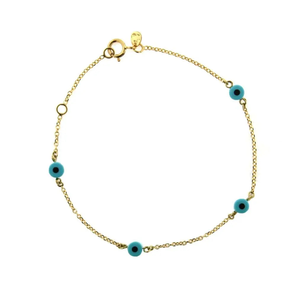 Fabriqué en Grèce avec une attention méticuleuse à la qualité, ce bracelet est en or jaune massif 18 carats hypoallergénique, sans nickel ni plomb. L'œil bleu clair signature est fait de Corian durable et lisse, connu pour sa finition raffinée et sa protection symbolique. L'œil bleu est depuis longtemps considéré comme un talisman contre la négativité et pour attirer l'équilibre et la bonne fortune.