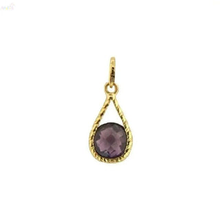 Pendentif Goutte Améthyste Facettée Ronde en Or Jaune Massif 18K