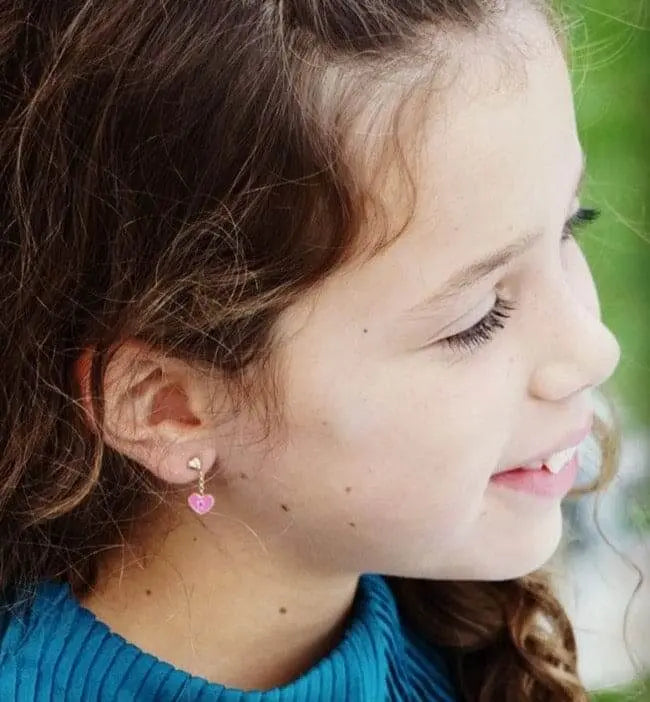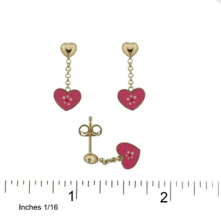 Ajoutez une touche de douceur avec nos boucles d'oreilles à tige en or jaune massif 18 carats, cœur poli supérieur et cœur rose suspendu avec fleur émaillée au centre. Ces adorables boucles d'oreilles mesurent 0,60 pouce de hauteur et sont conçues pour les filles de 5 ans et plus. Fabriquées en or jaune 18 carats hypoallergénique, elles sont sans plomb ni nickel, garantissant un port confortable. Fabriquées en Italie, chaque paire est joliment emballée dans une boîte cadeau Amalia avec sac, ce qui en fait un choix de cadeau parfait.